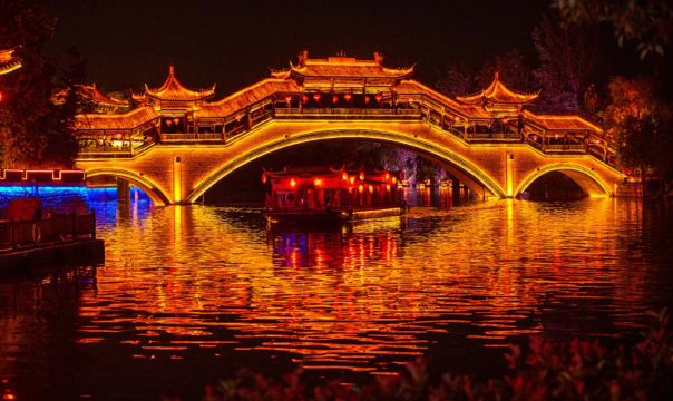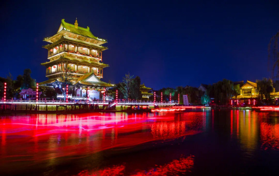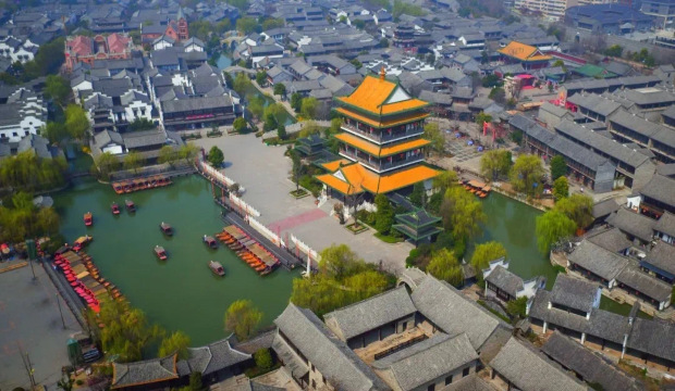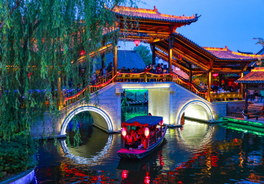 台儿庄古城内古城爱河两侧(古城河畔)
