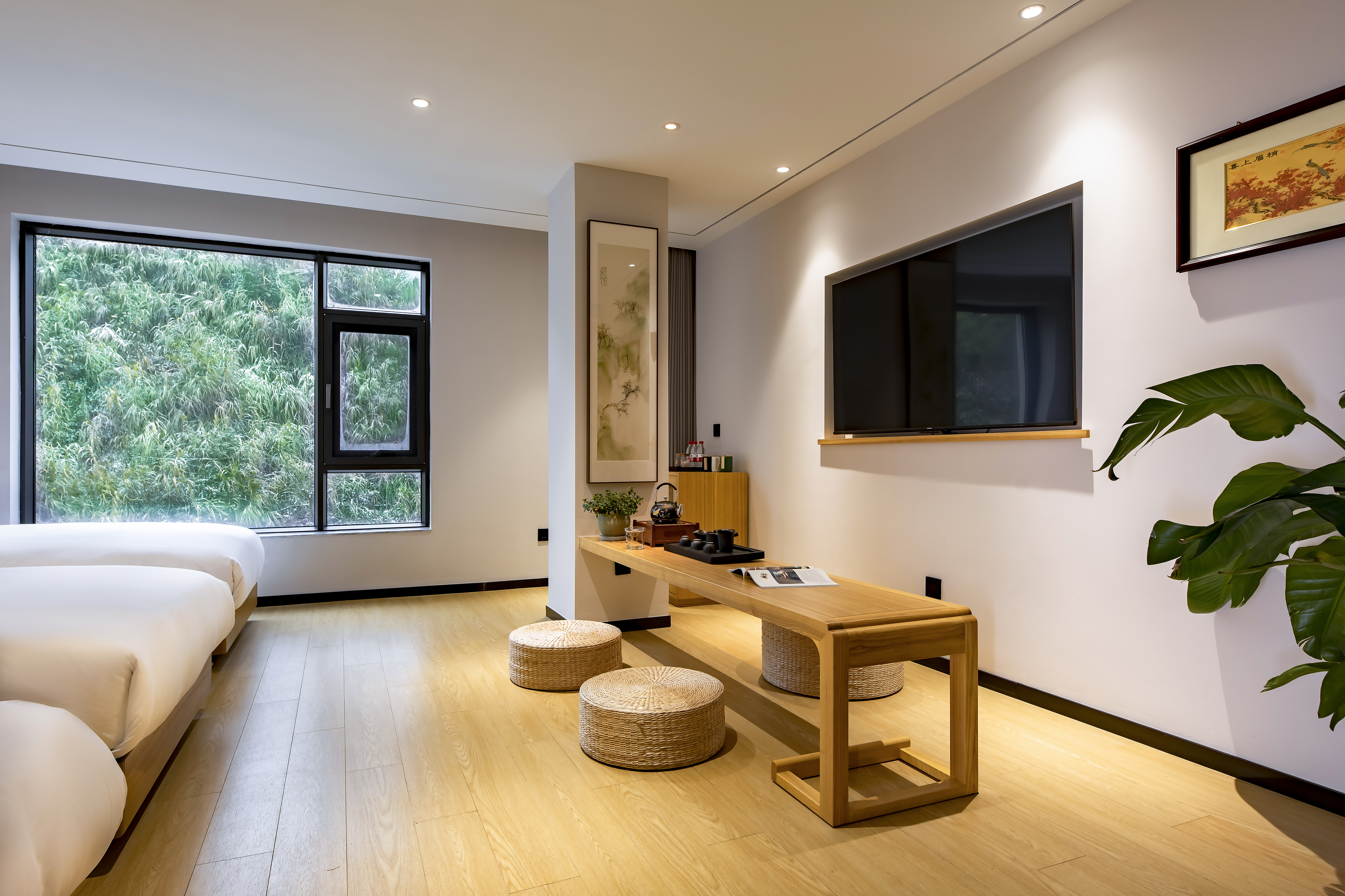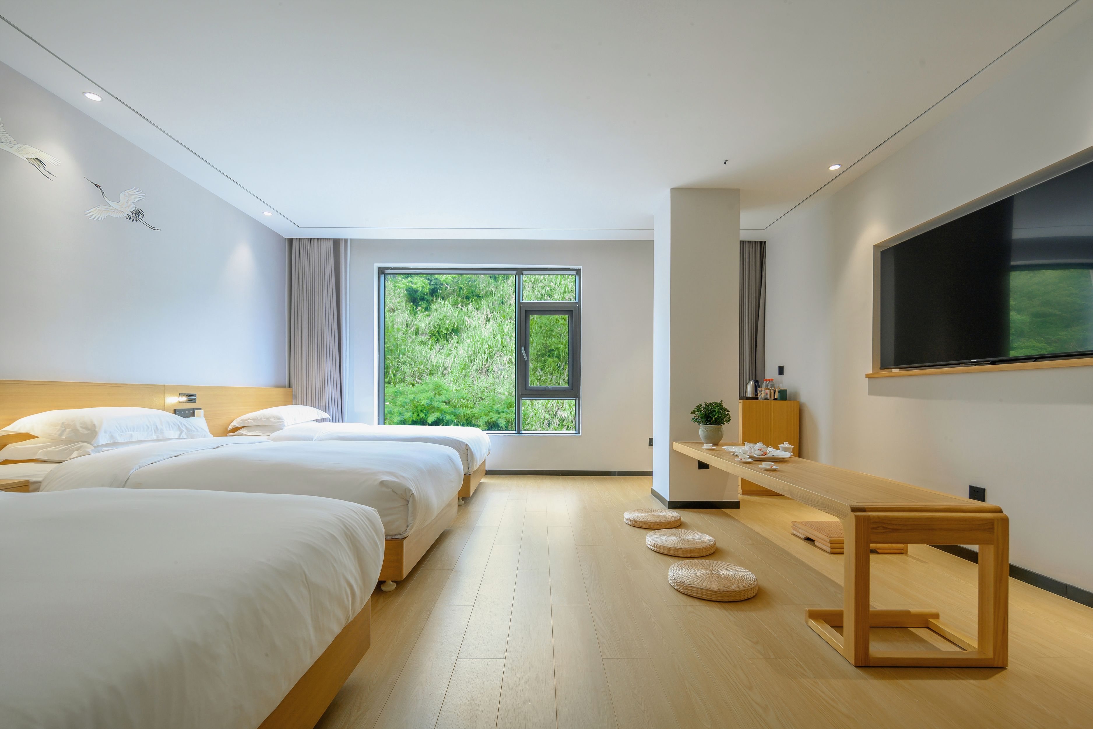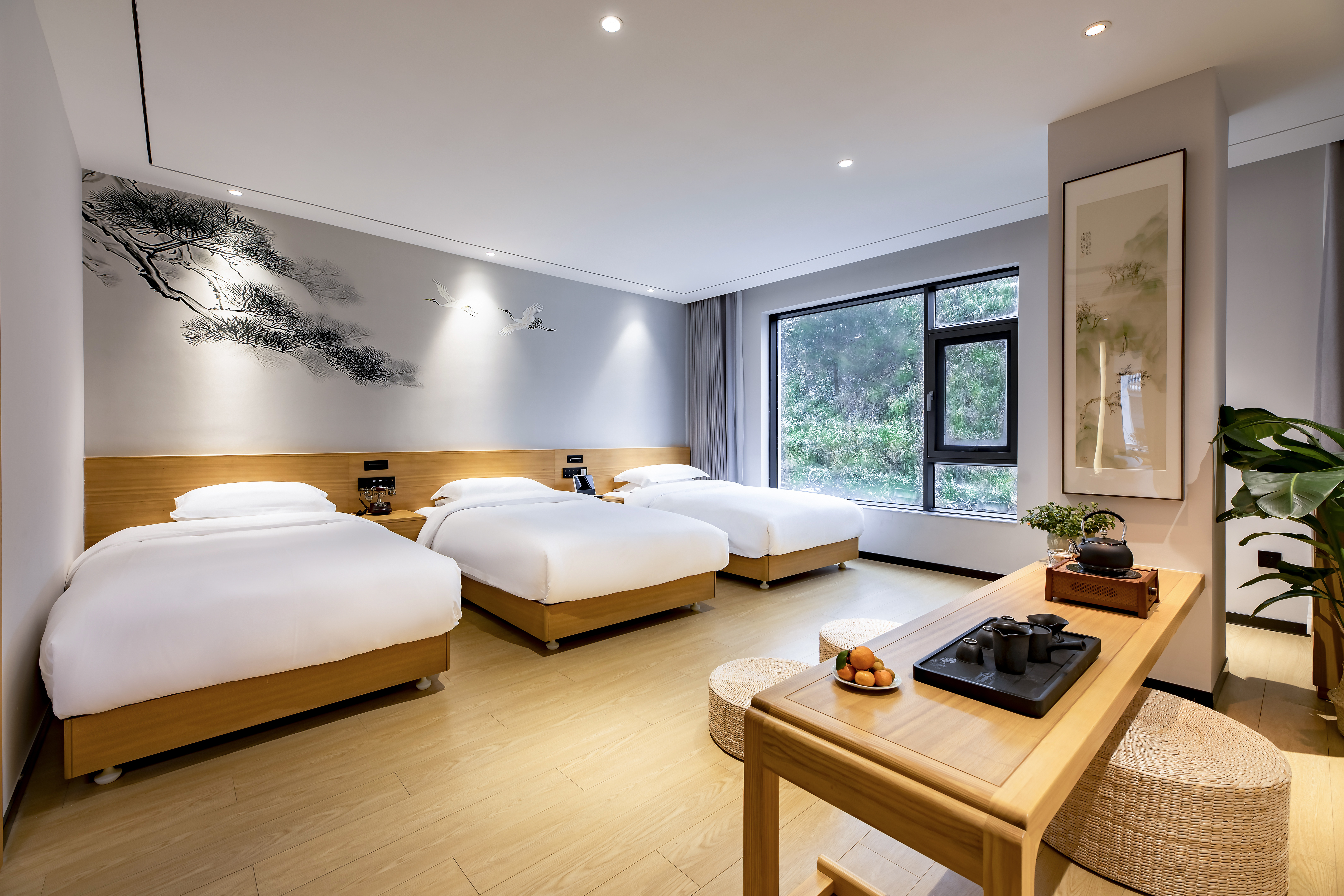 菩提·禅意茶韵山景三人房 【全屋智能+深睡床垫+贡缎床品+2米品茗桌+私房茶+解压筋膜枪】