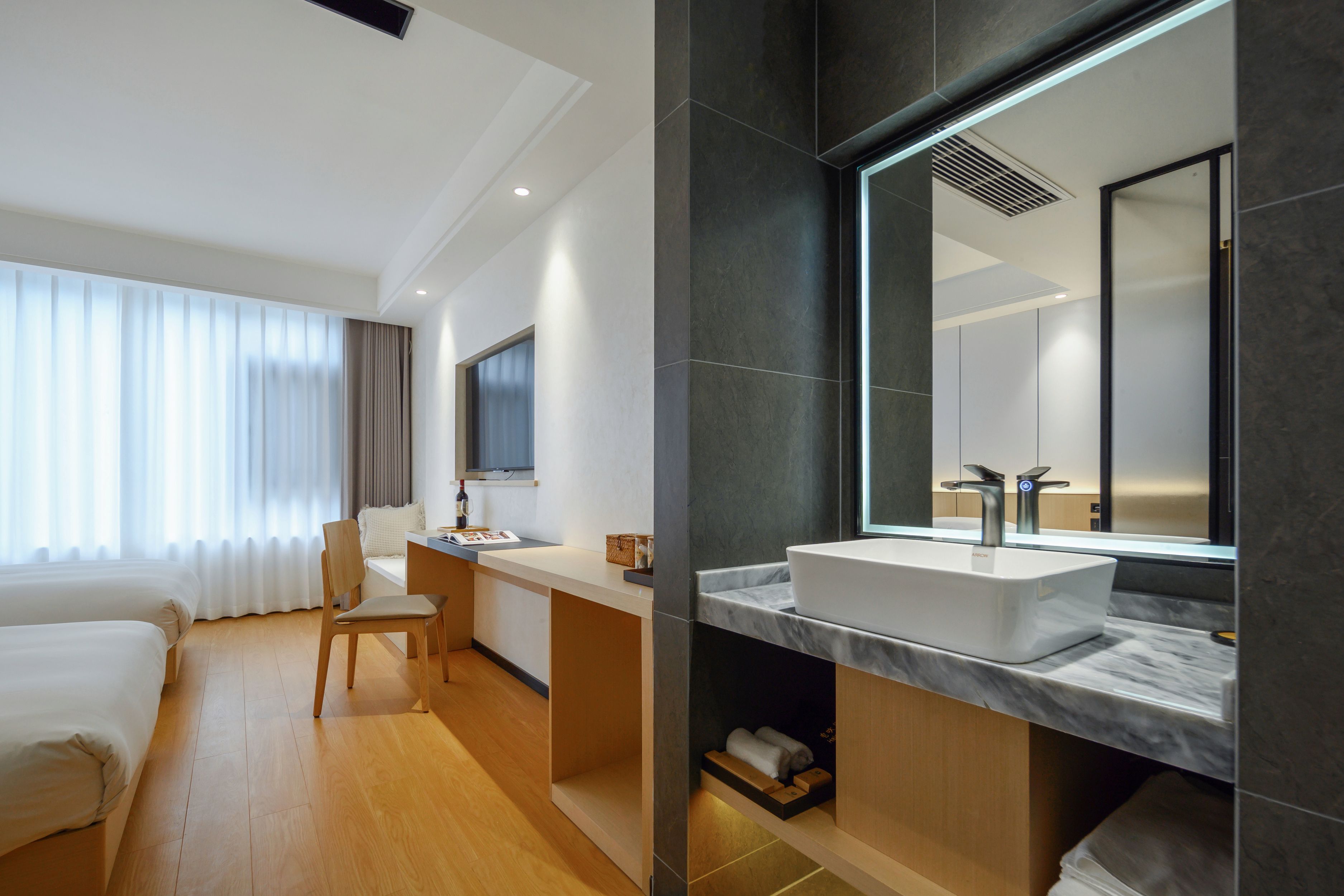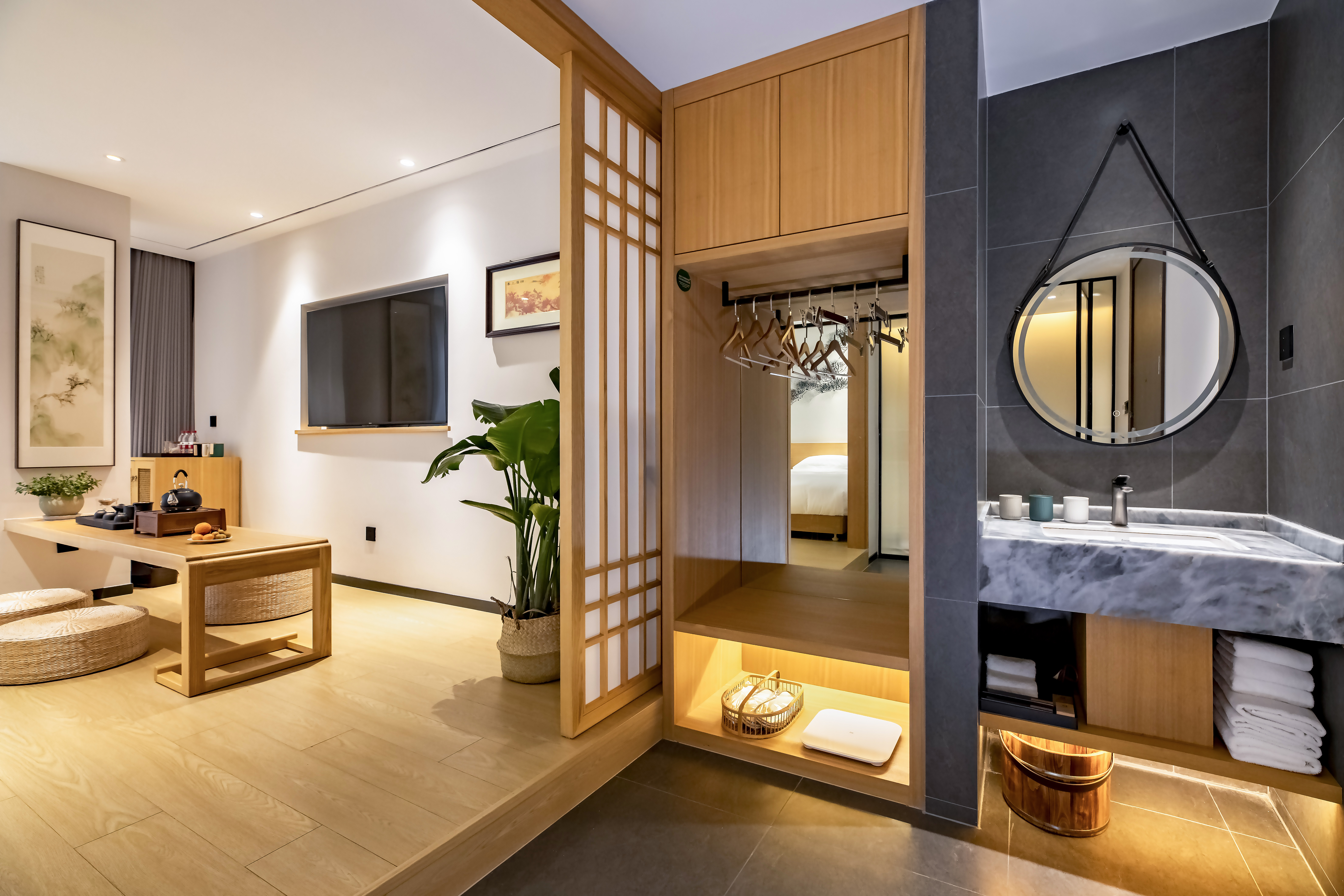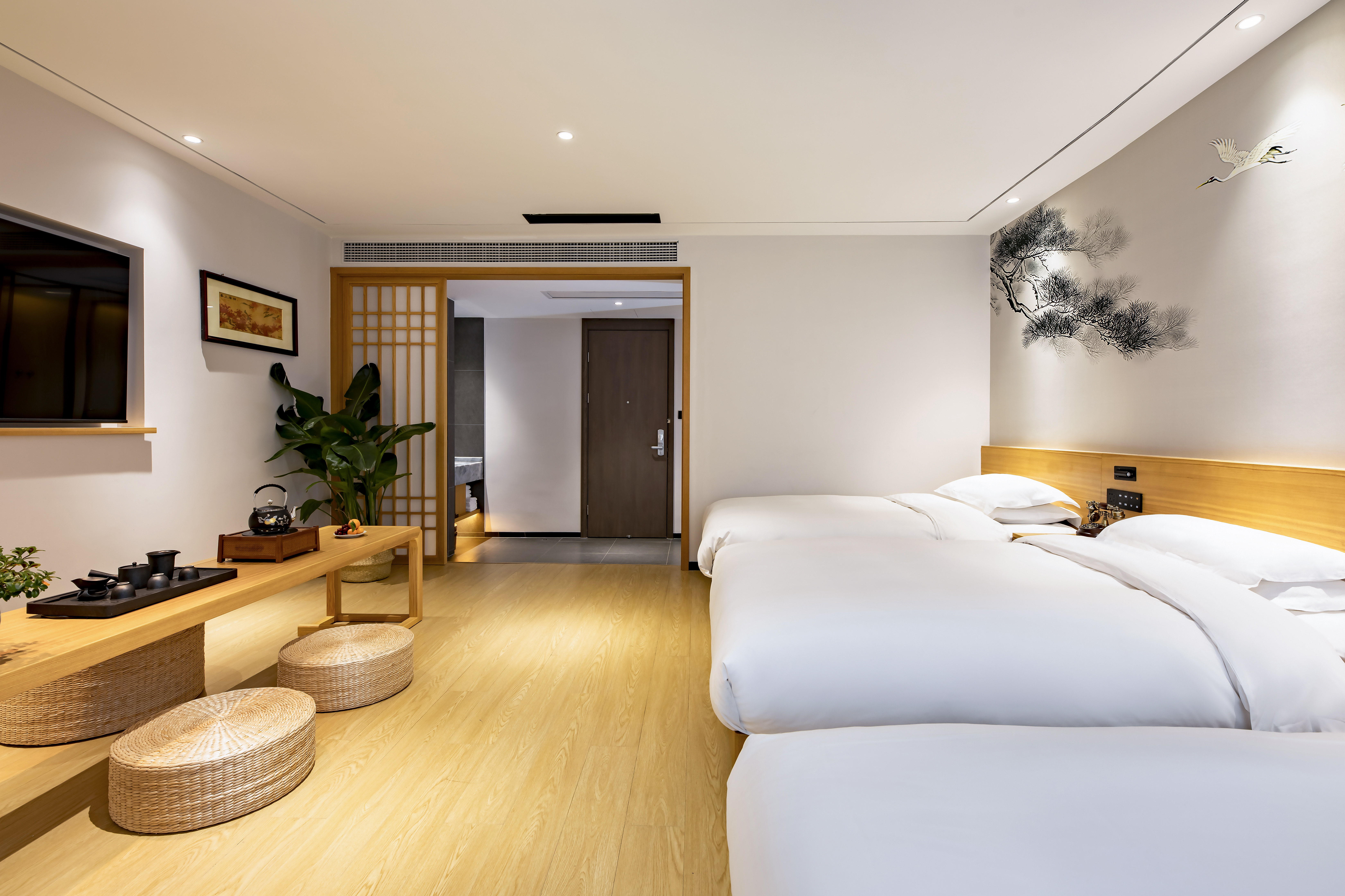 菩提·禅意茶韵山景三人房 【全屋智能+深睡床垫+贡缎床品+2米品茗桌+私房茶+解压筋膜枪】