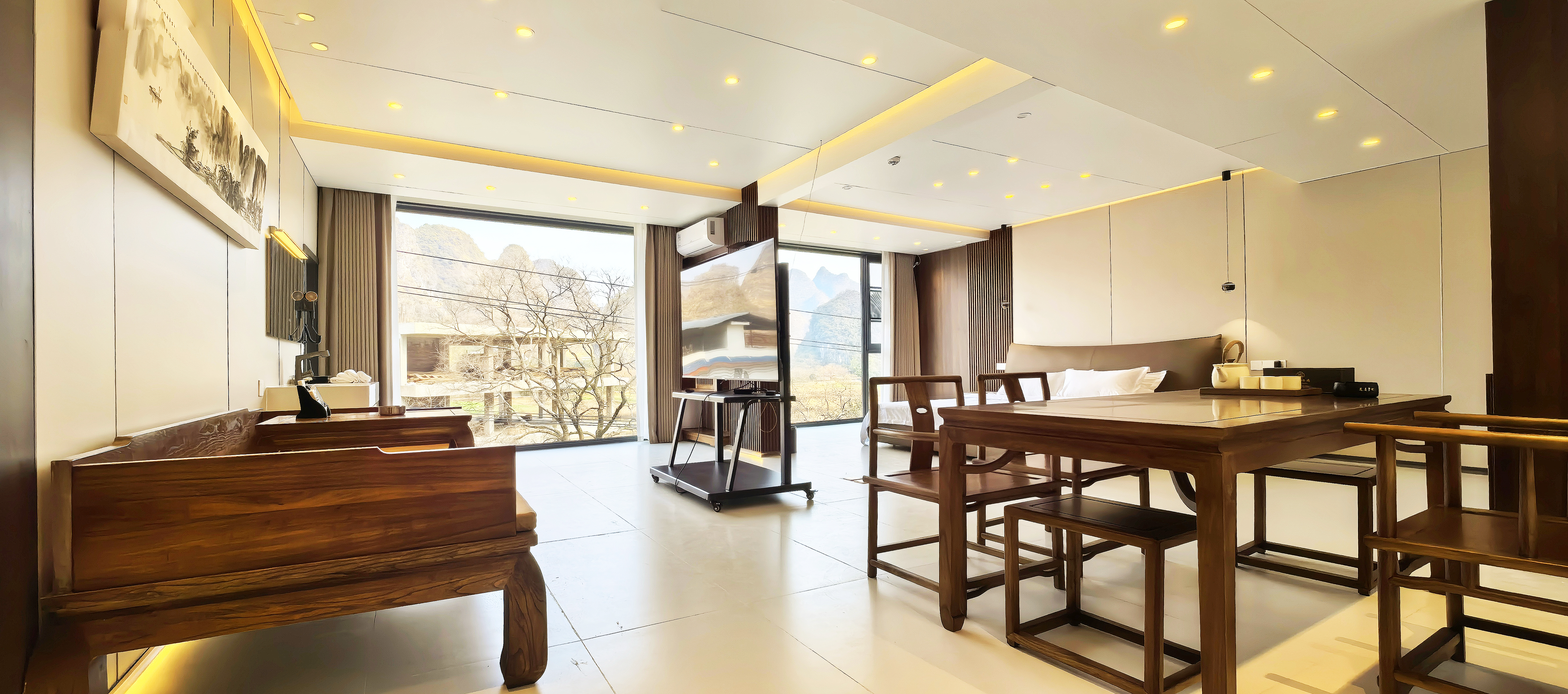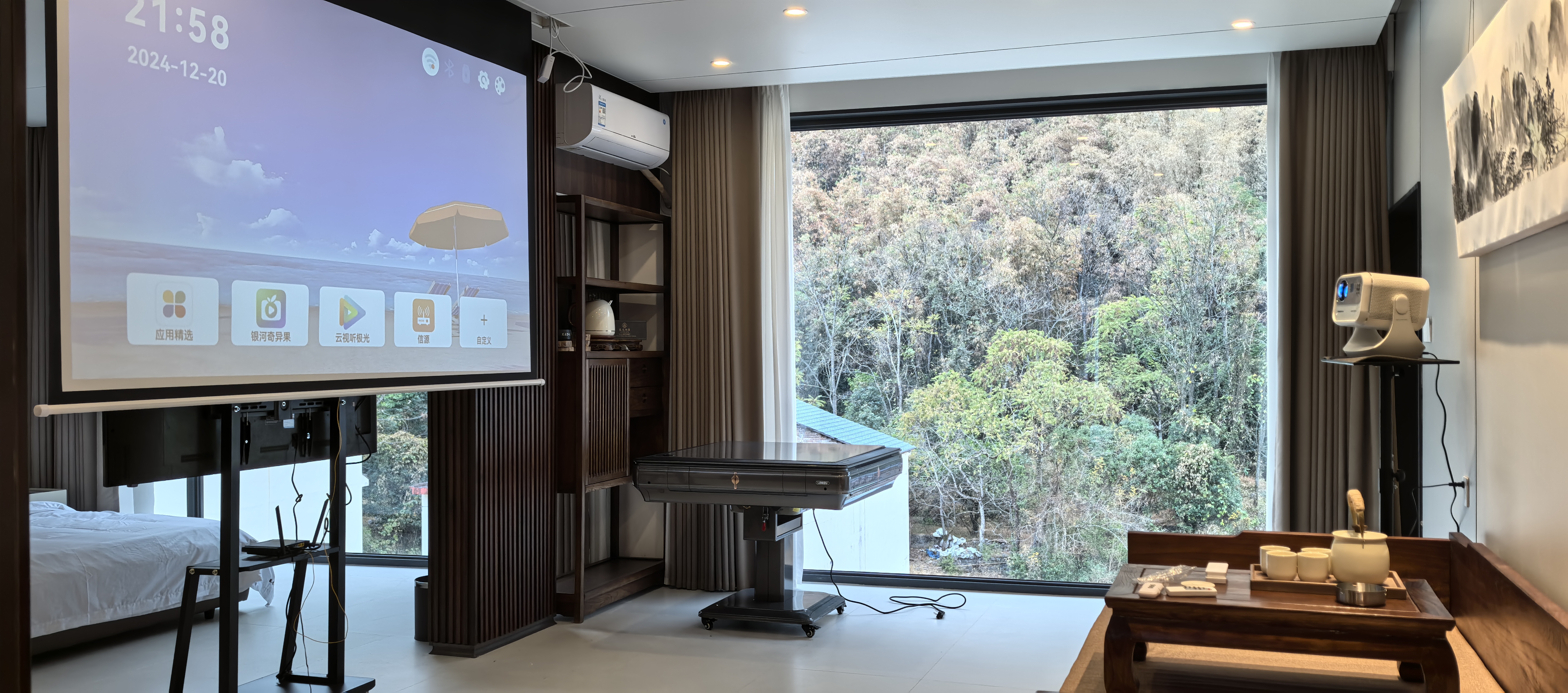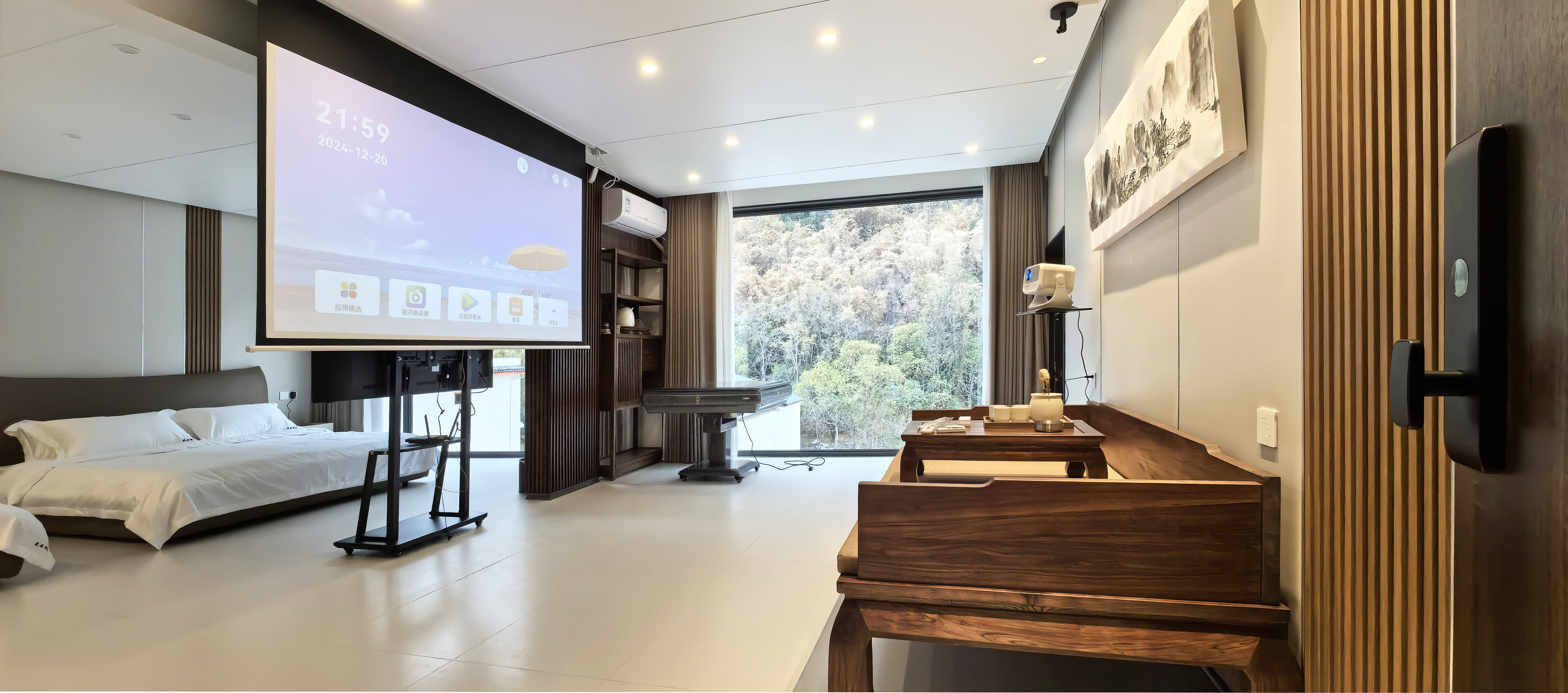豪華山景雙床麻將套房(落地窗、投影儀、紅木羅漢床)