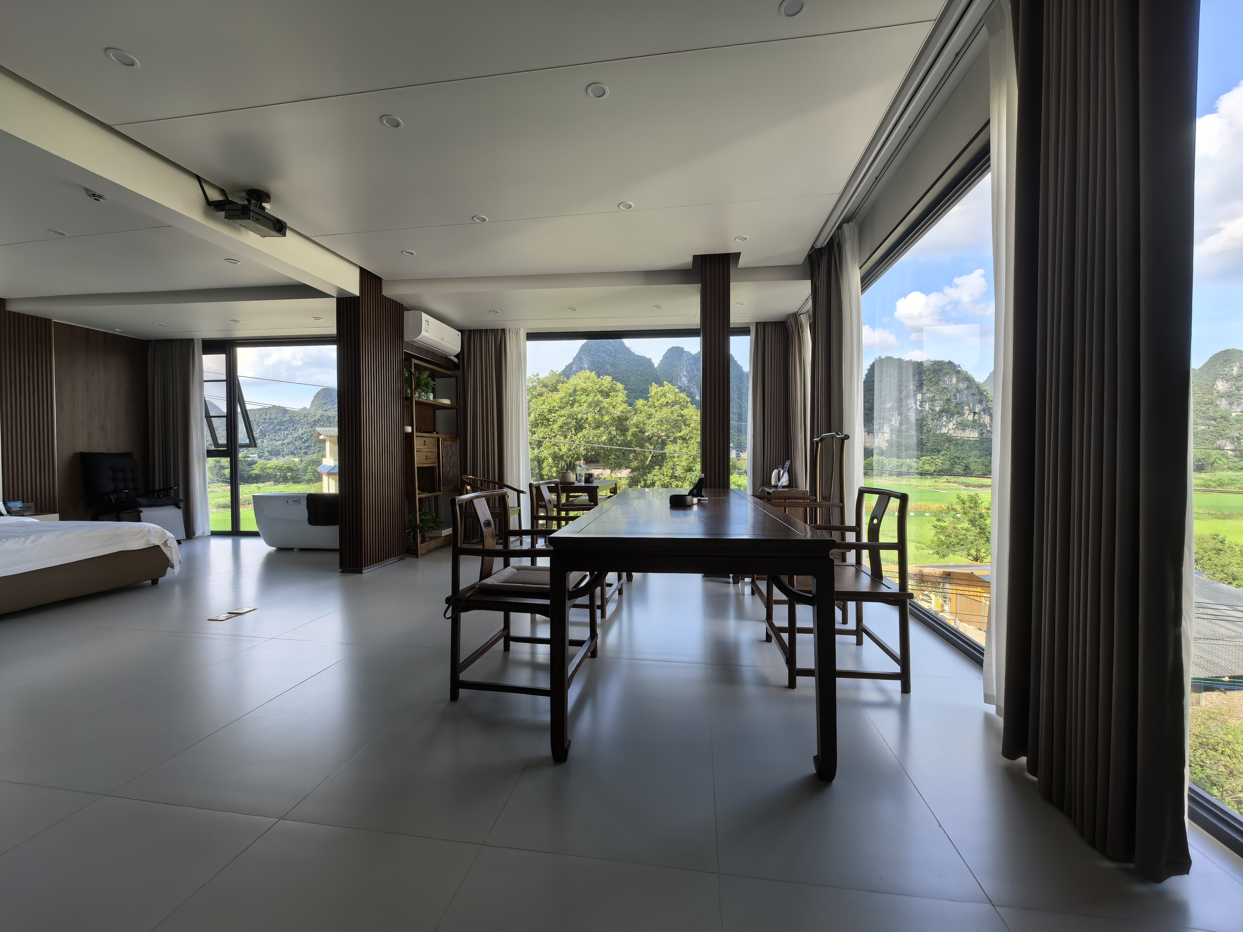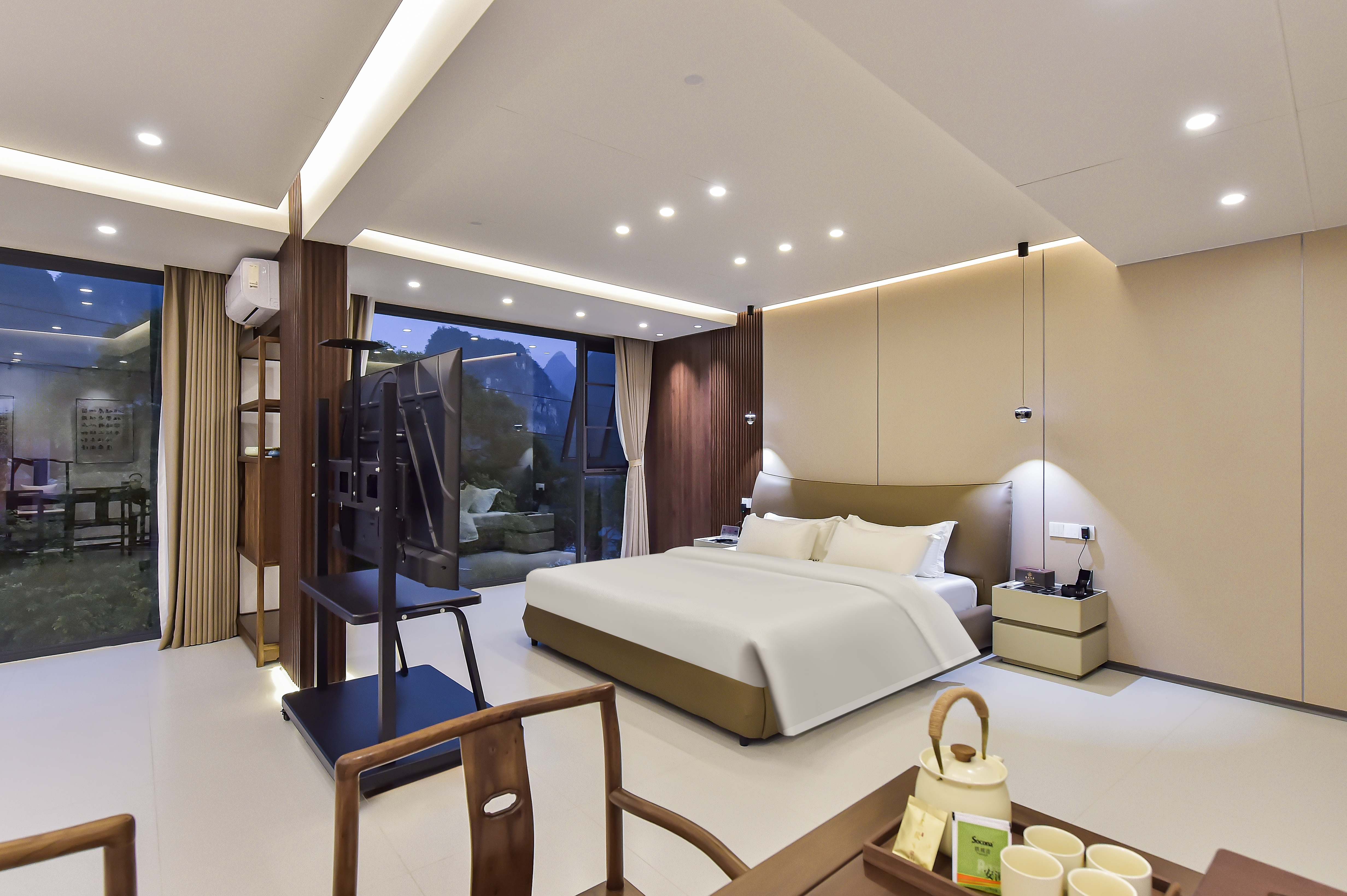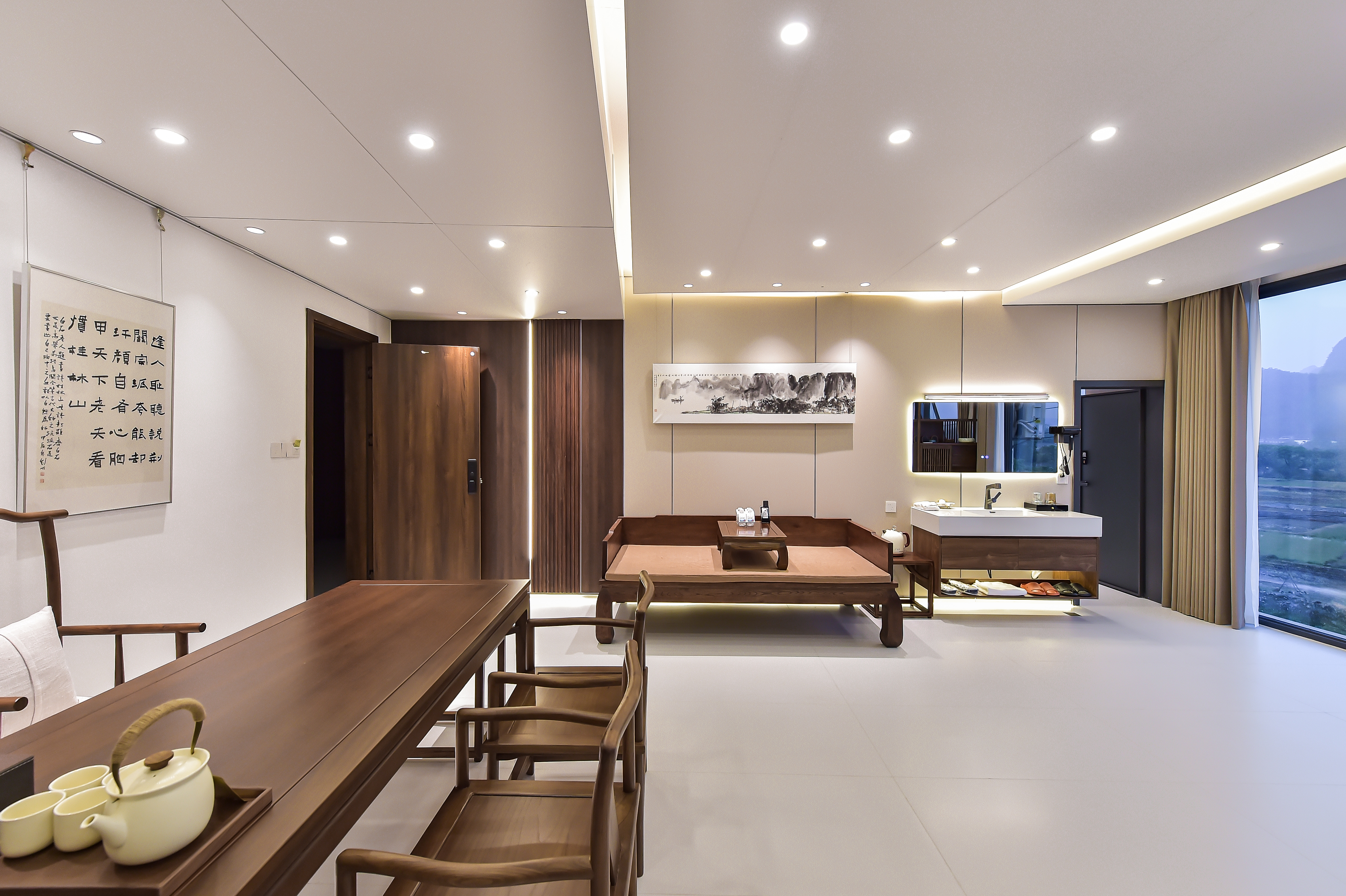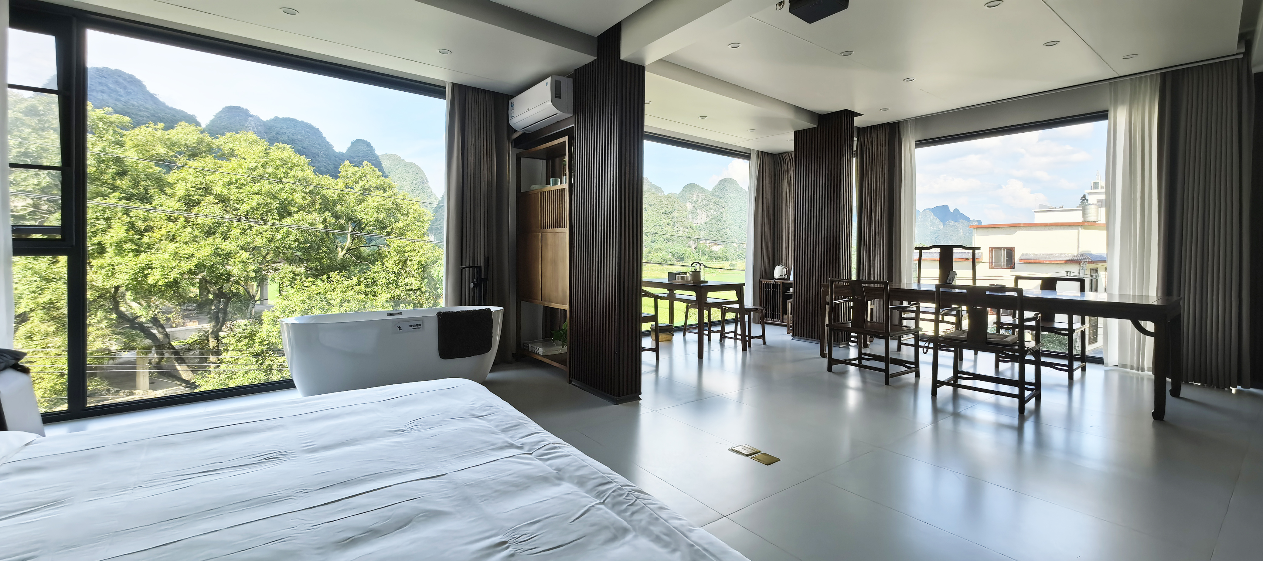 多角度落地窗豪华河景套房(茶桌超大书案超大床浴缸)