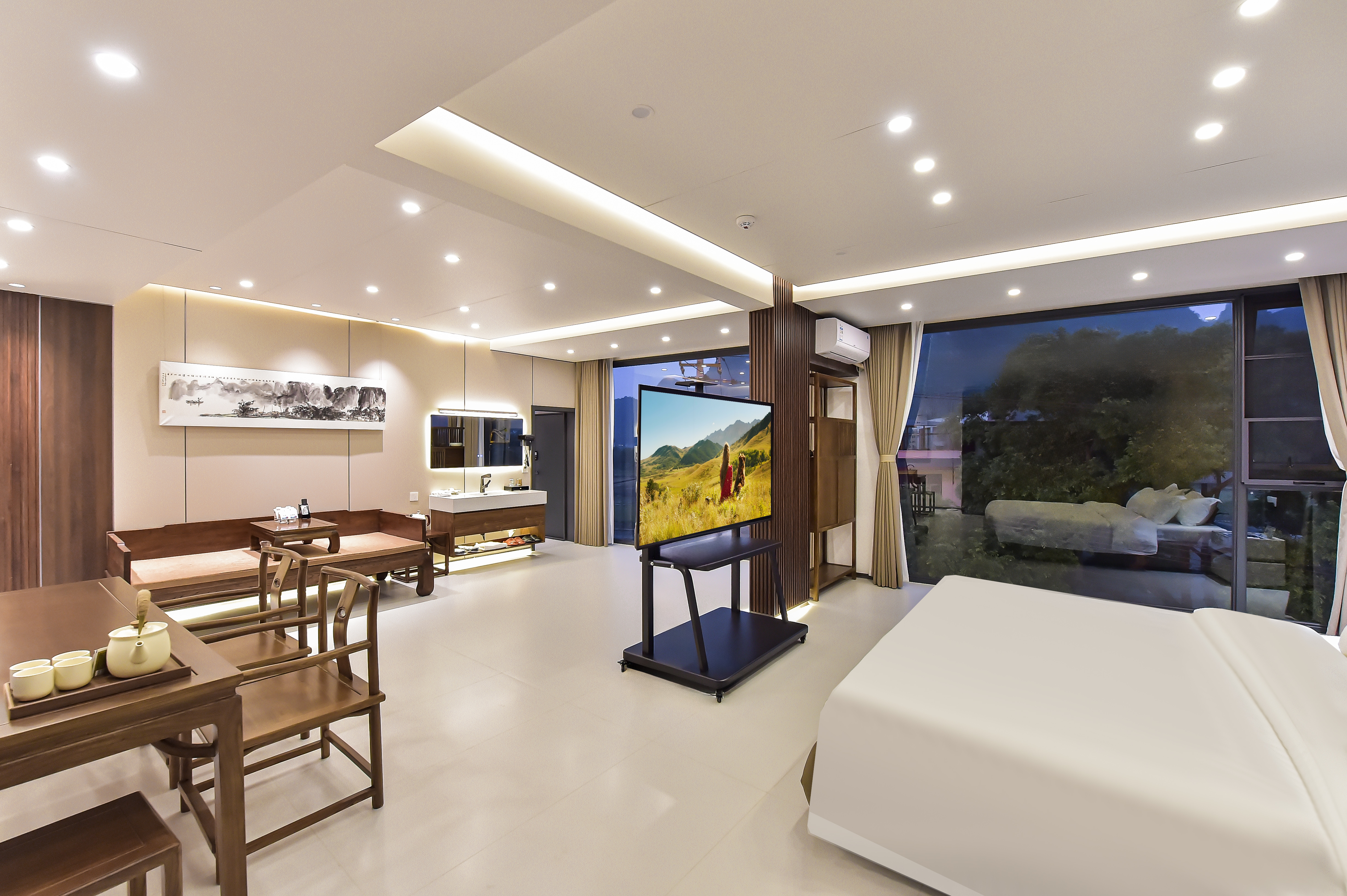 多角度露台山景家庭套房(超大床桑拿房茶台罗汉床)