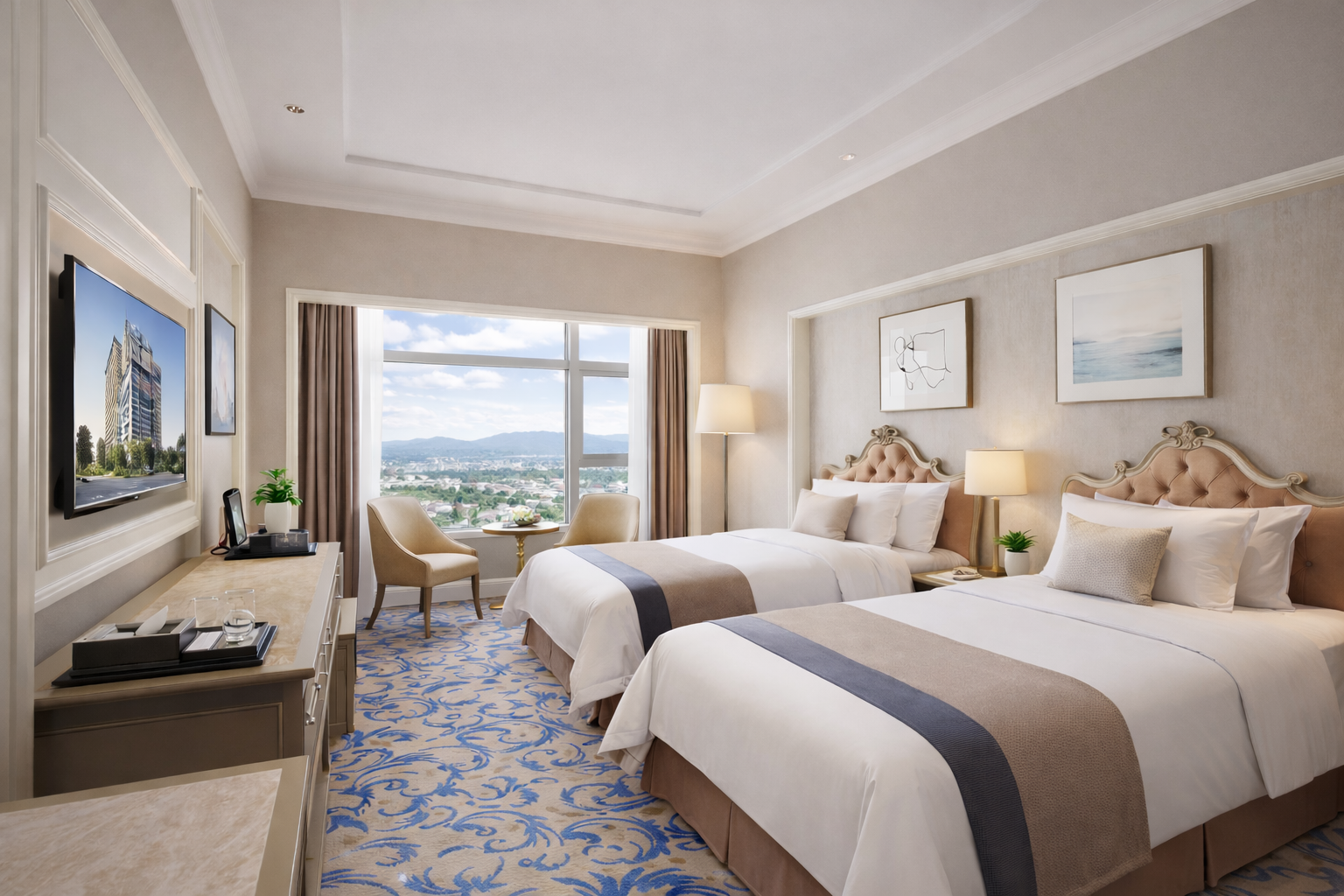 行政双床房「城市流光色彩+浴缸休闲时光+小冰箱配备」