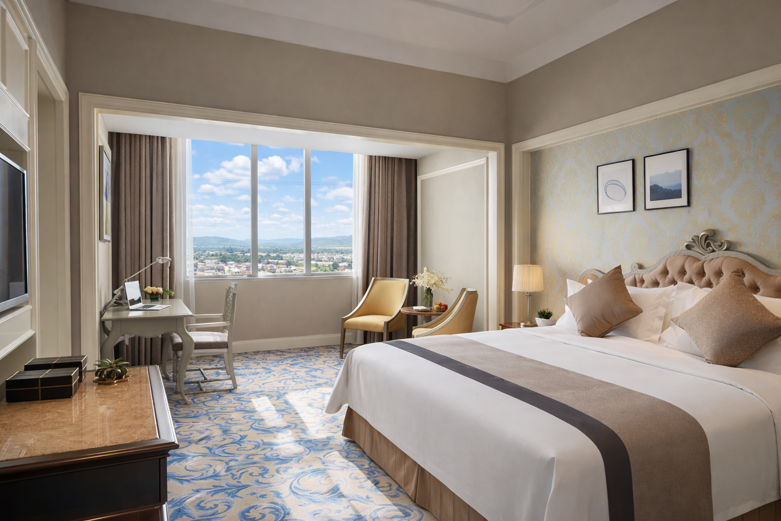 高级大床房「休闲茶几空间+化粧放大镜+轻盈美梦好眠」