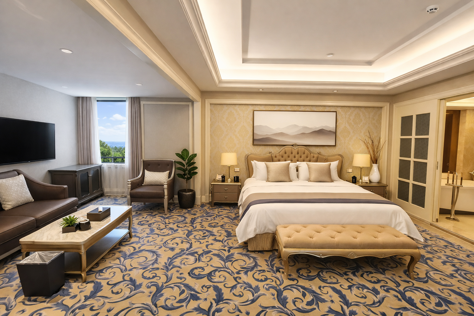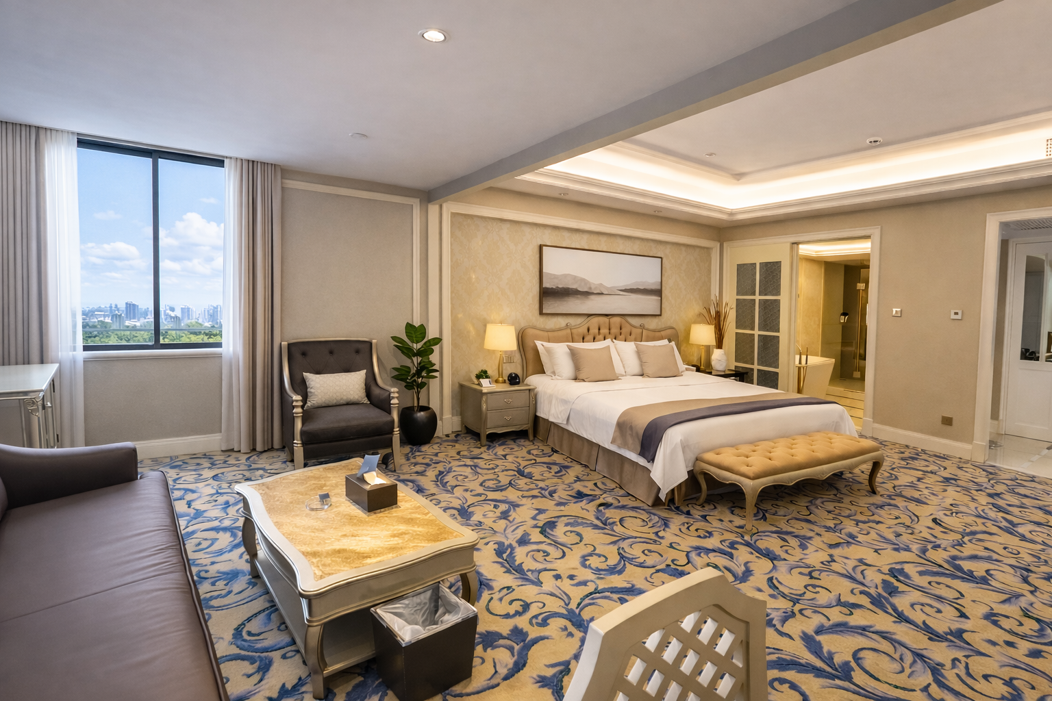 豪华大床房「坐卧休憩沙发+舒适浴缸惬意+空间宽敞通透」