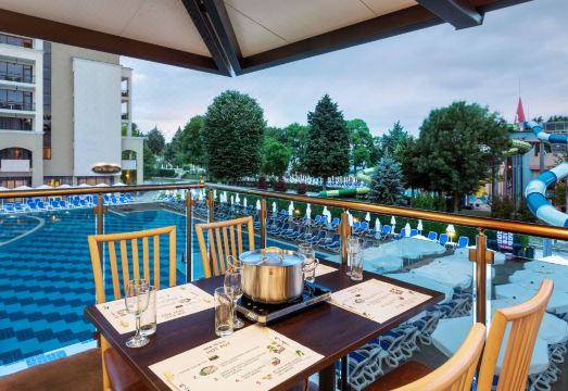 Imagine a quiet and stylish beachfront resort, embraced by a green park and lush gardens, next to a sandy beach! In one of the premier resorts on the Bulgarian Black Sea Coast. Designed so that kids have fun while parents relax. Aquapark, outdoor and indoor swimming pools, kids’ pools, tennis courts, volleyball,basketball and mini-football