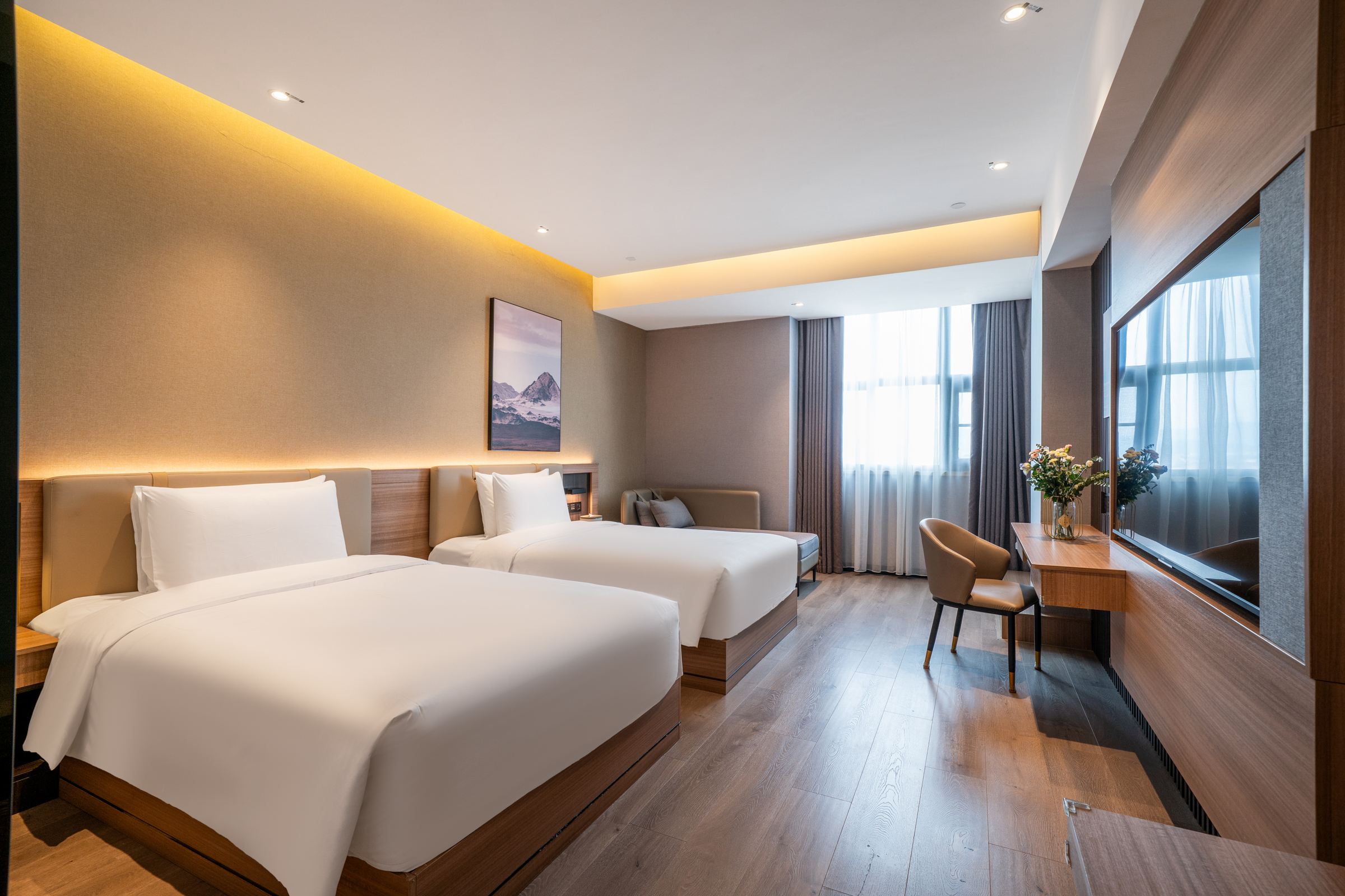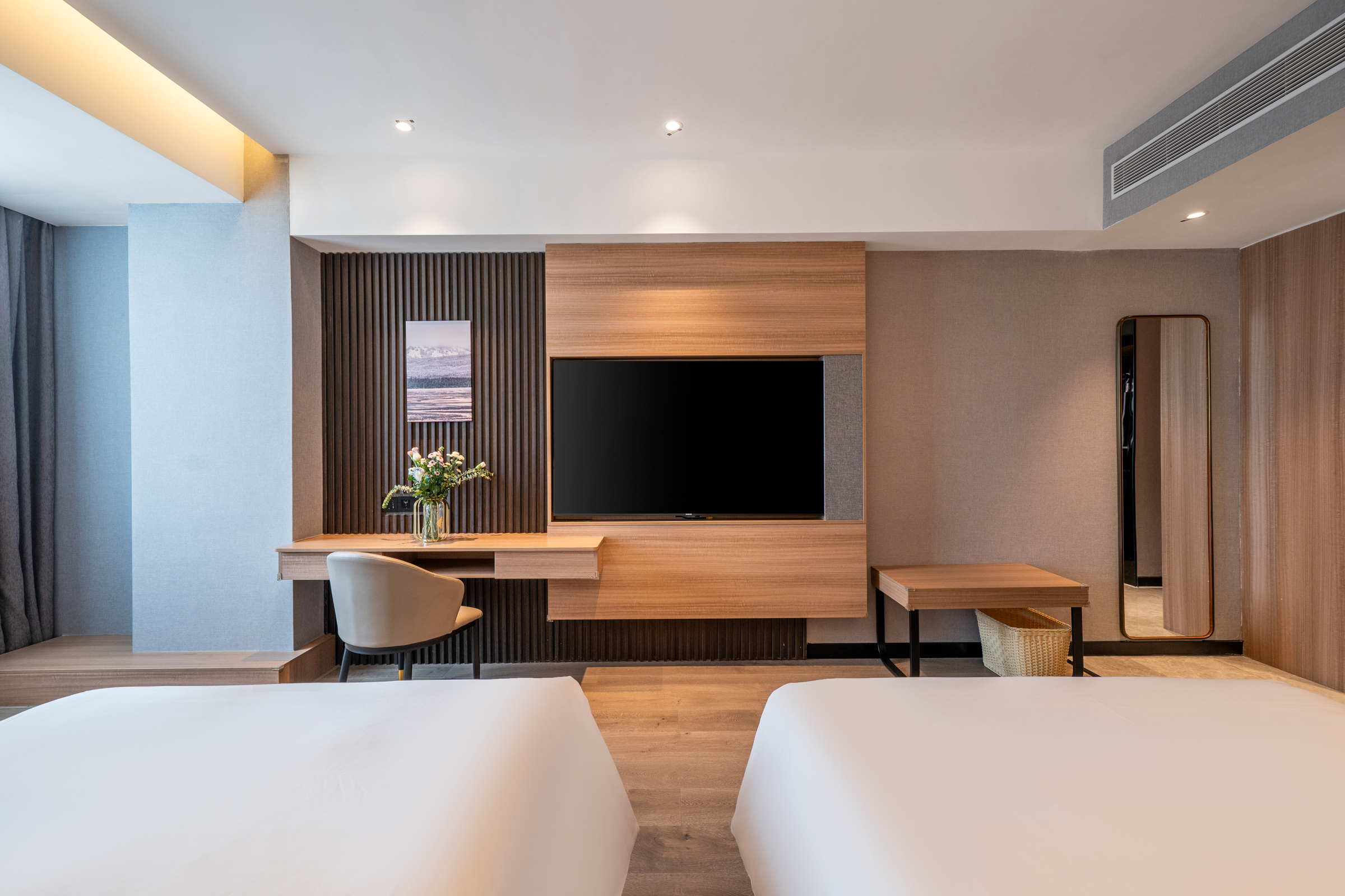 豪华双床房(6层隔音玻璃+65寸投屏电视+mini冰箱)