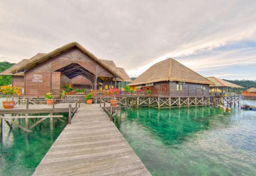 Gayana Marine Resort Kota Kinabalu?(哥打京那巴鲁伽亚娜海洋度假村)位于婆罗洲海岸边,坐落在一片苍翠繁茂的珊瑚礁岛屿边上。52间水上别墅悉数经过精心打造,您可以一边聆听轻轻拍打的海浪,一边尽览京那巴鲁神山的风姿。酒店以保护珍贵的海洋生态为特色主旨,内设一家海洋生态研究中心,致力于修复野生珊瑚礁羣落,并呼吁人们保护濒临灭绝的巨蚌。在这里,宾客们都可以参与修复工作,给一度遭到破坏的海底带回勃勃生机。无论您想要健康满满的新鲜食材或简单田园的家常食品,酒店都能满足您的饕餮期望。您可以前往酒店餐厅享用三餐,也可以在舒适惬意的客房中悠享一顿私人餐食。海鲜餐厅(Alu?Alu?Seafood)建于水上,位于度假村宁静的一隅。伴着悠悠的海风和轻拍的浪花,您可在此细细品嚐上佳的中式海鲜。所有的食材均源自酒店私有的有机渔场,使您放心享用新鲜海产。除此之外,酒店还有提供西式餐点的麦可可餐厅(Macac?Restaurant),商务会客或悠闲下午茶皆宜的酒廊(Latitude?Lounge)。水疗中心(Solace?Spa)完美地结合了亚洲风情及西式概念,提供诸多按摩、美容以及理疗服务,并设有温泉套房和漩涡浴缸。客人入住期间还可以参加潜水、森林远足等各项活动。从哥打京那巴鲁国际机场驱车大约15分钟即可抵达码头(Jesselton?Point?Ferry?Terminal),从码头登船后即可抵达酒店,酒店也可为您安排接送机。