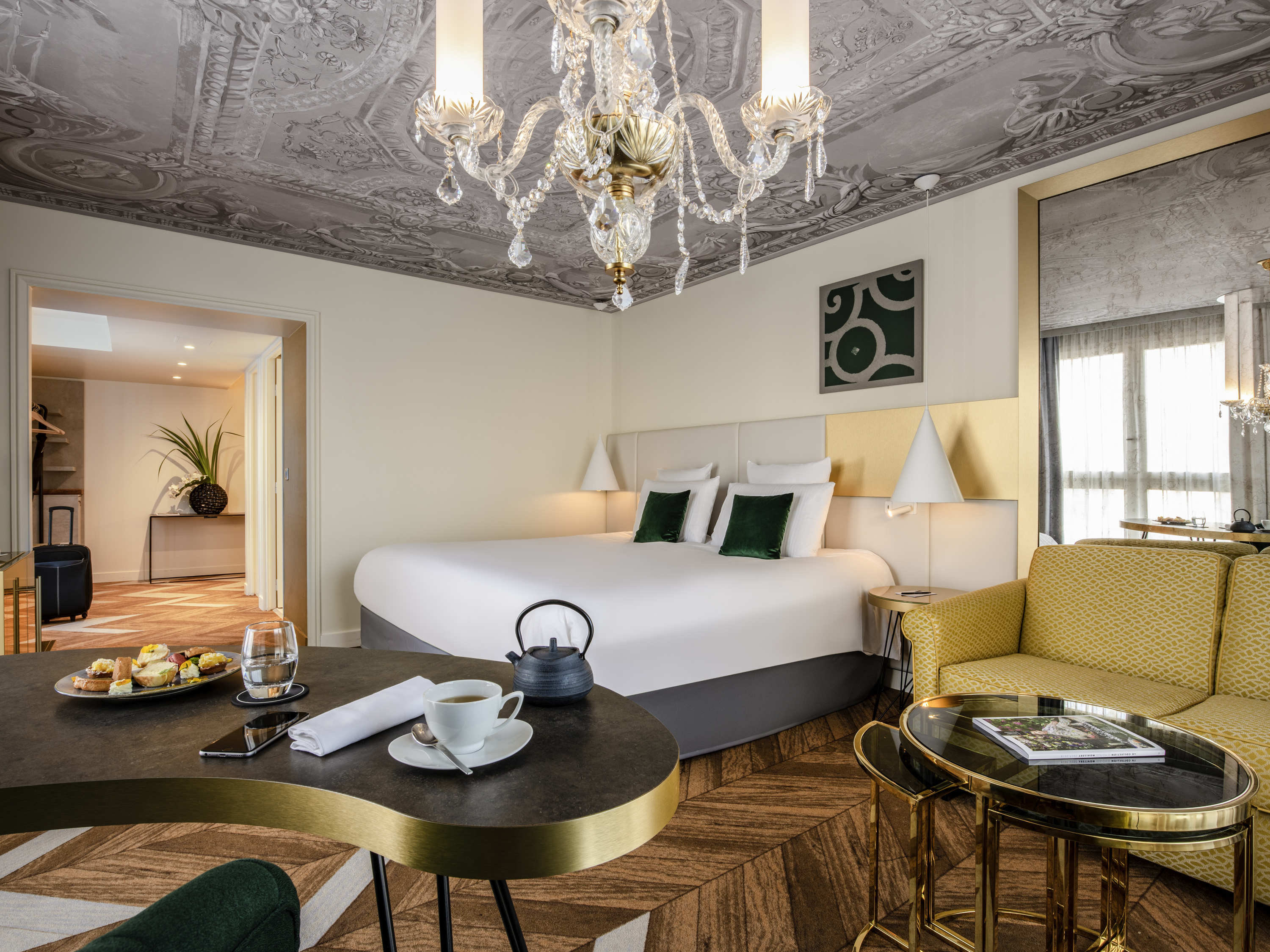 Le Louis invites you to uncover its 4-star services, located in the heart of Versailles, near the palace. Treat yourself to a luxurious stay in a renovated historic hotel where eras meet to combine contemporary elegance with classic refinement. Enjoy the cosy ambiance of L'Alcôve and bar, crowned with a majestic chandelier. Light reigns at Le Louis, lending a warm, magical aura to this sumptuous setting.