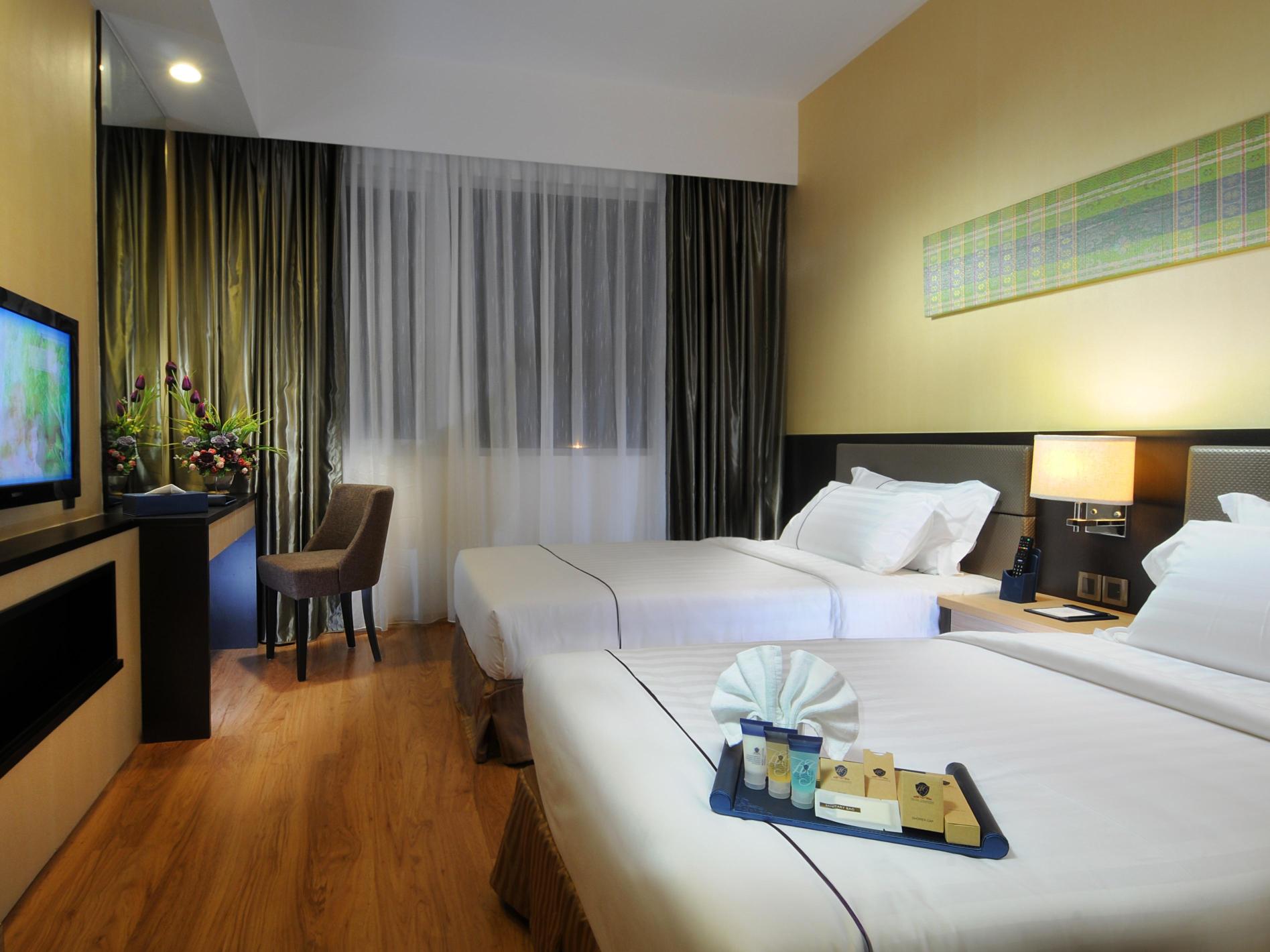 新山格拉纳达酒店酒店位于新山TamanBukitIndah,步行可前往AeonJuscoBukitIndah。优质客房的惬意享受,交通便利的地理位置,时尚豪华的装修设计,是游客前往新山的理想之选。酒店距离TescoBukitIndah有8分钟的步行路程,距离乐高乐园和新加坡大士关卡(TuasSingaporeLink)有10分钟的车程,距离布蒂港湾主题公园(PuteriHabourThemePark)有15分钟的车程,距离丹绒柏乐巴斯港口(TanjongPelepasPort)20分钟车程。所有客房都空间宽敞,配有空调,设有镶木地板、一台平面电视和咖啡机。套房设有独立的客厅区。连接浴室配有淋浴。酒店也提供现代会议室和一个商务中心以及免费停车场。客人可以在礼品店购买纪念品,或要求提供机场班车服务。酒店的24小时前台提供报纸和行李寄存服务。Olla餐厅供应当地和国际美食以及每日自助早餐。客人可以在BreweryFunPub酒吧享用饮品,可通过客房服务在客房内用餐。