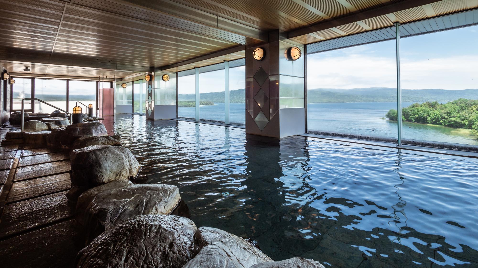 新阿寒酒店位于北海道阿寒湖附近,屋顶温泉浴池和带免费 Wi-Fi 的宽??敞客房。
