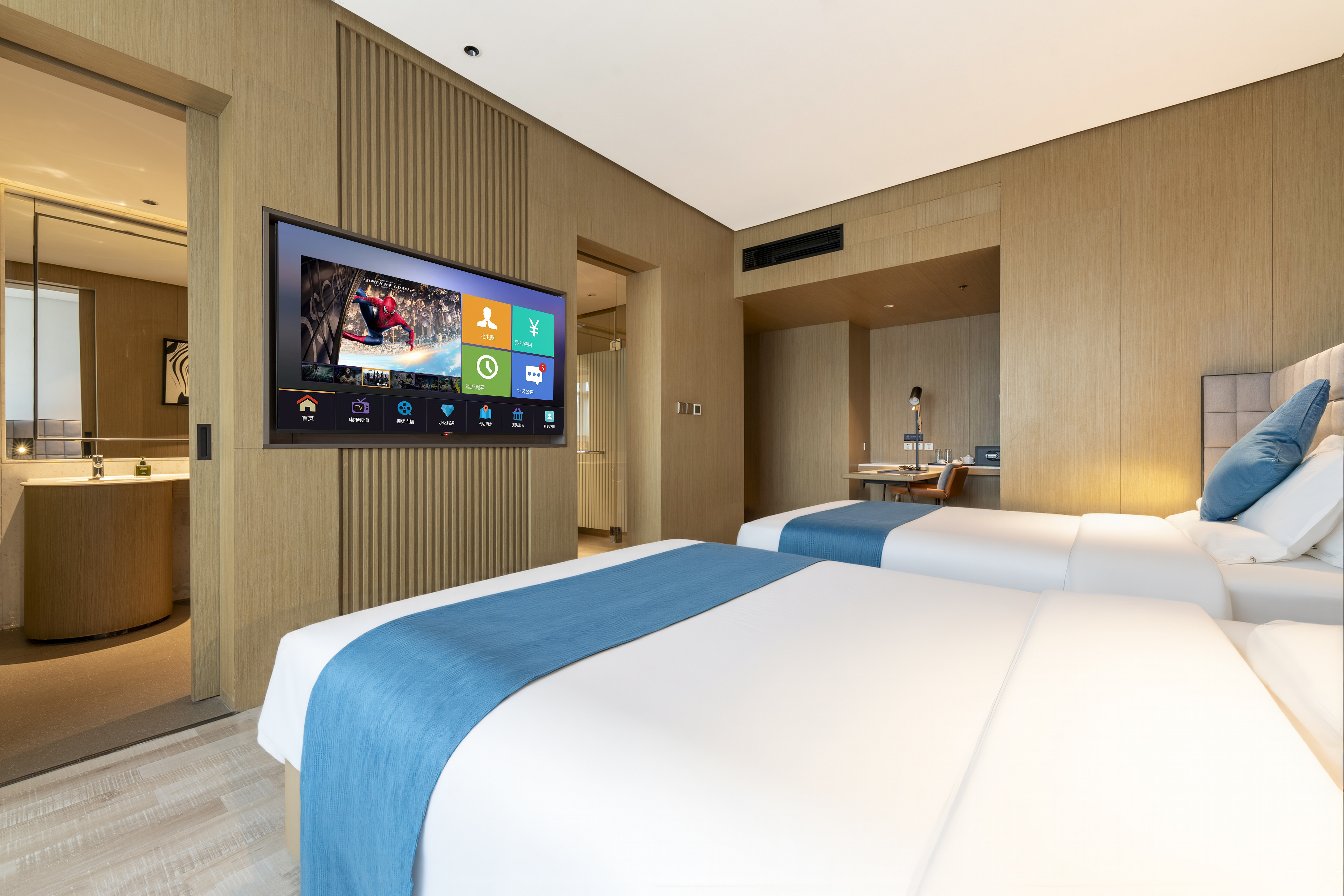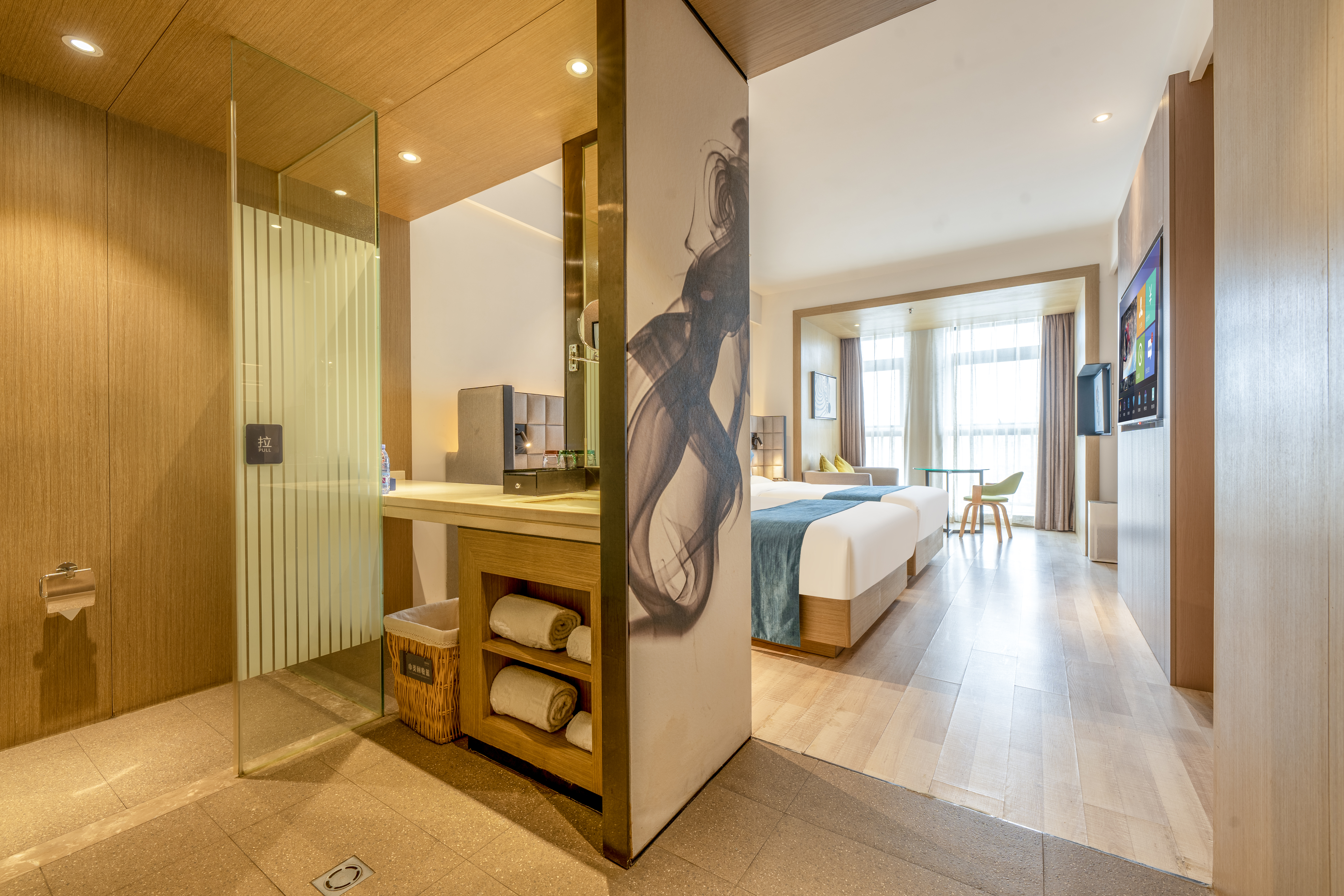 0压梦百合精品标准间(空调开放+落地窗+梦百合床垫)