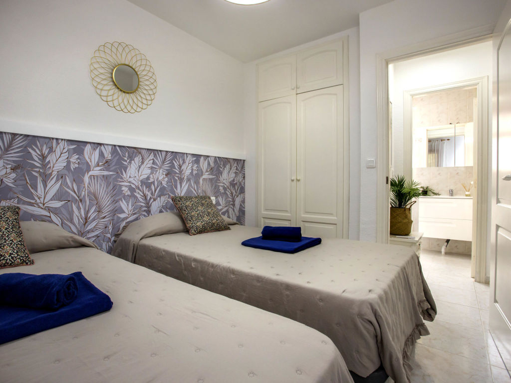 Beautiful apartment block "El Patio", 3 storeys. Outside the resort, 4 km from the centre of Denia, 500 m from the sea. For shared use: garden with plants and trees, swimming pool (18 x 10 m, depth 40 - 210 cm, seasonal availability: 01.Jan. - 31.Dec.) with internal staircase. Unconventional pool shape. Children's pool, outdoor shower, tennis (1 x hard court), parking on the premises. Supermarket 1.2 km, restaurant 750 m, bar, bus stop 250 m, sandy beach 500 m. "El Patio", 2-room apartment 50 m2. Renovated in 2024, beautiful and cosy furnishings: living/dining room with 1 sofabed (135 cm, length 190 cm), digital TV, air conditioning, fan and forced-air heating. Exit to the patio, to the swimming pool. 1 room with 2 beds (105 cm, length 200 cm), fan. Open kitchen (3 ceramic glass hob hotplates, toaster, kettle, microwave, freezer, electric coffee machine). Shower/WC. No heating option. Terrace. Terrace furniture. Facilities: washing machine, iron, hair dryer. Internet (WiFi, free). Parking. Please note: TV only ES. CV-VUT0515177-A