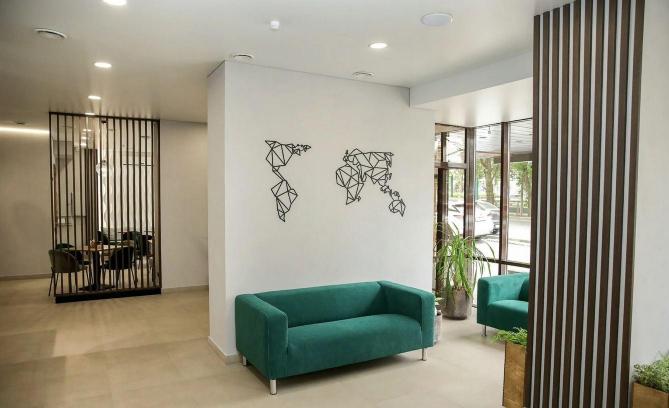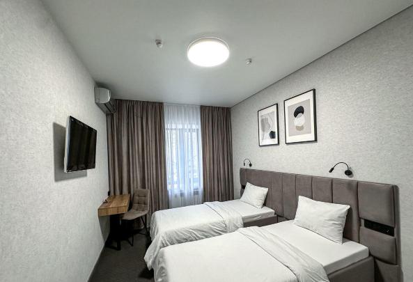 The bright rooms and qualified staff truly make guests feel at home. The interiors of the rooms are distinguished by comfort and modern design. The hotel's rooms are equipped with everything necessary for a comfortable stay (wi-fi, TV, two single or double beds, bedside tables, pull-out sofa, wardrobe, table, chair, split system, mini-bar, tea station, bathroom with bathtubs and toiletries).