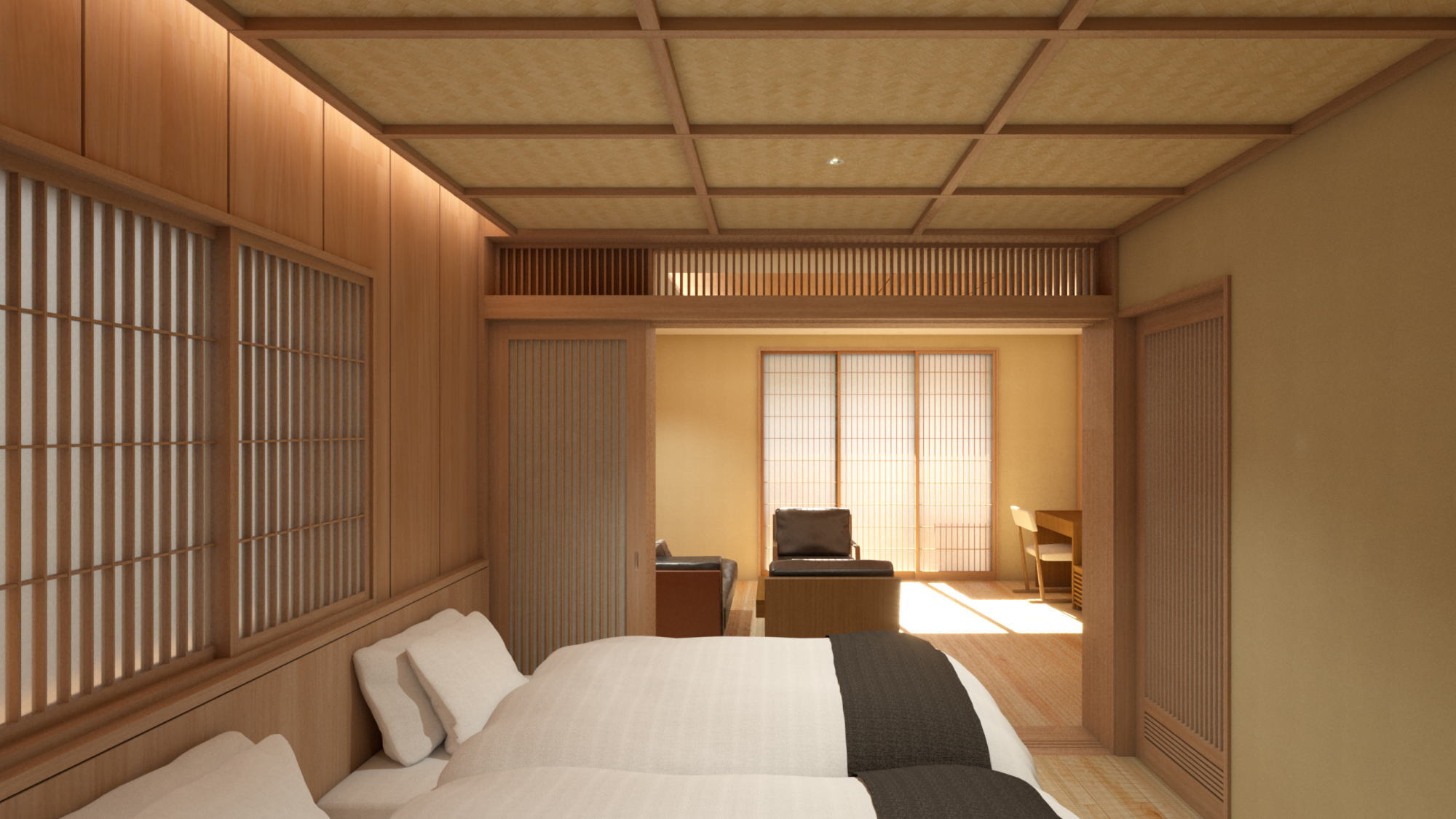 "四季彩“光”(日式双床房+日式房+室内浴池+露天浴池)