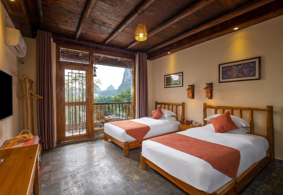 漓江·江景阳台双床房(90°直麪漓江+赏晚霞落日)