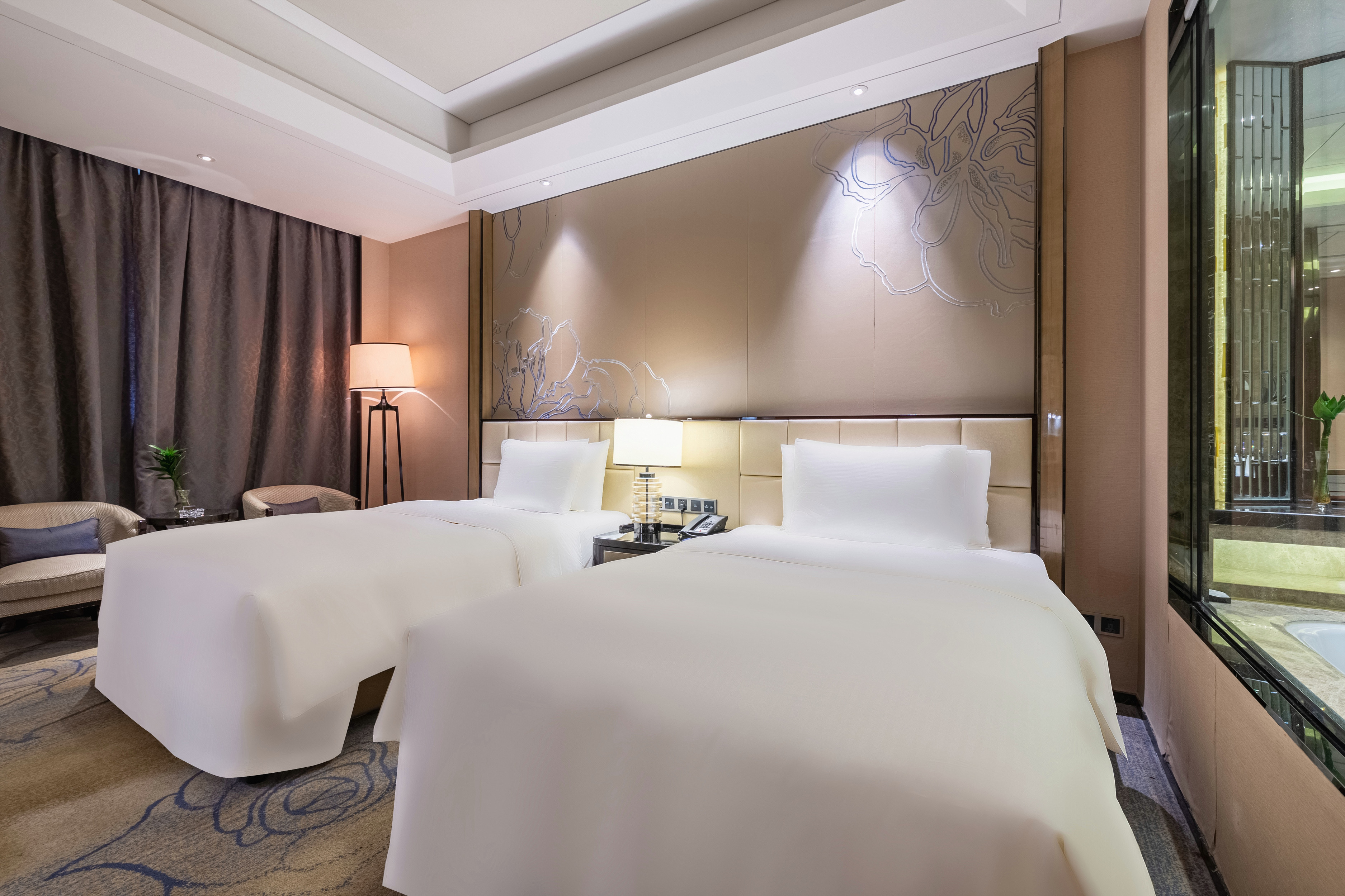 豪华双床房(金可儿乳胶床垫+悦享都市城景+深泡浴缸)