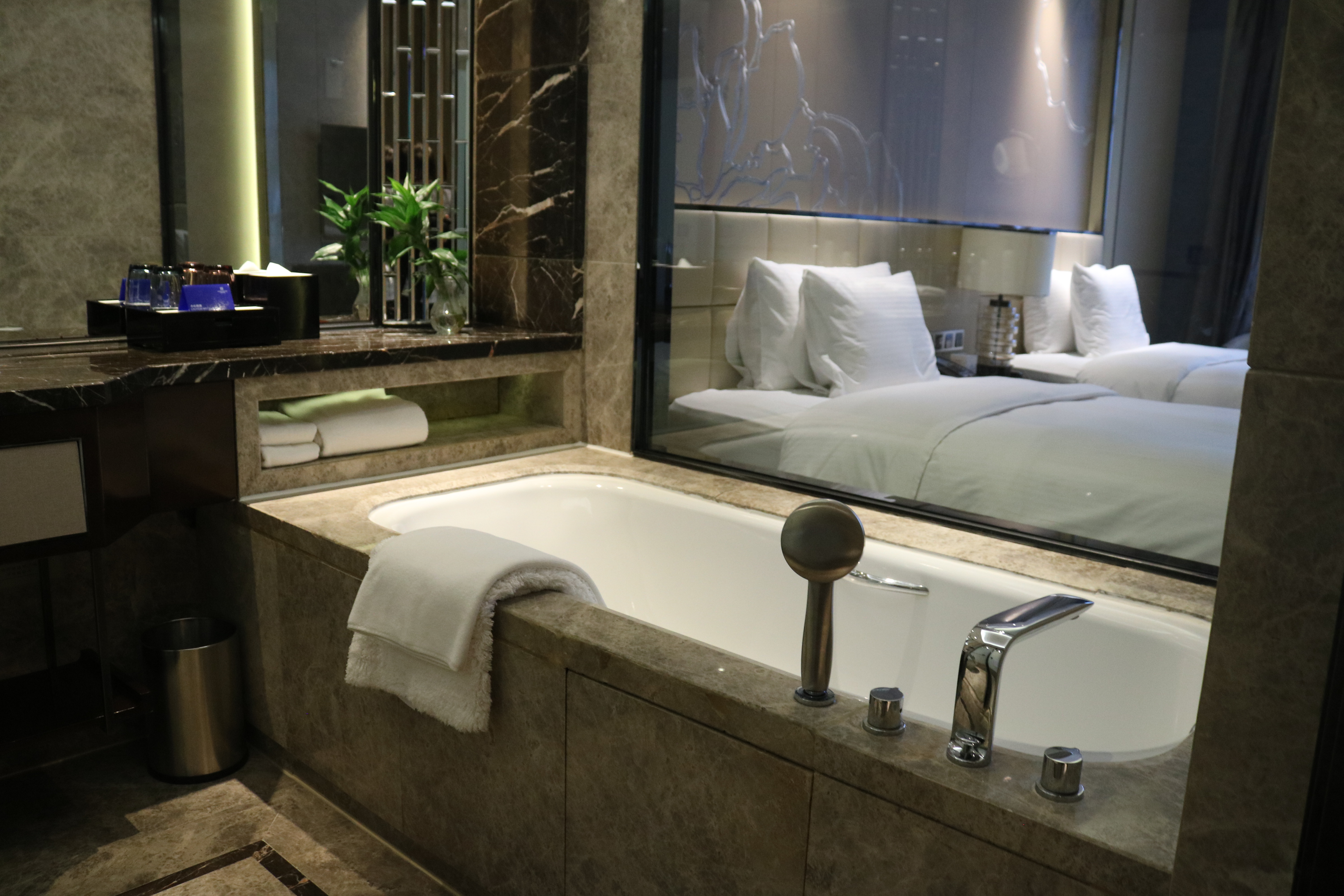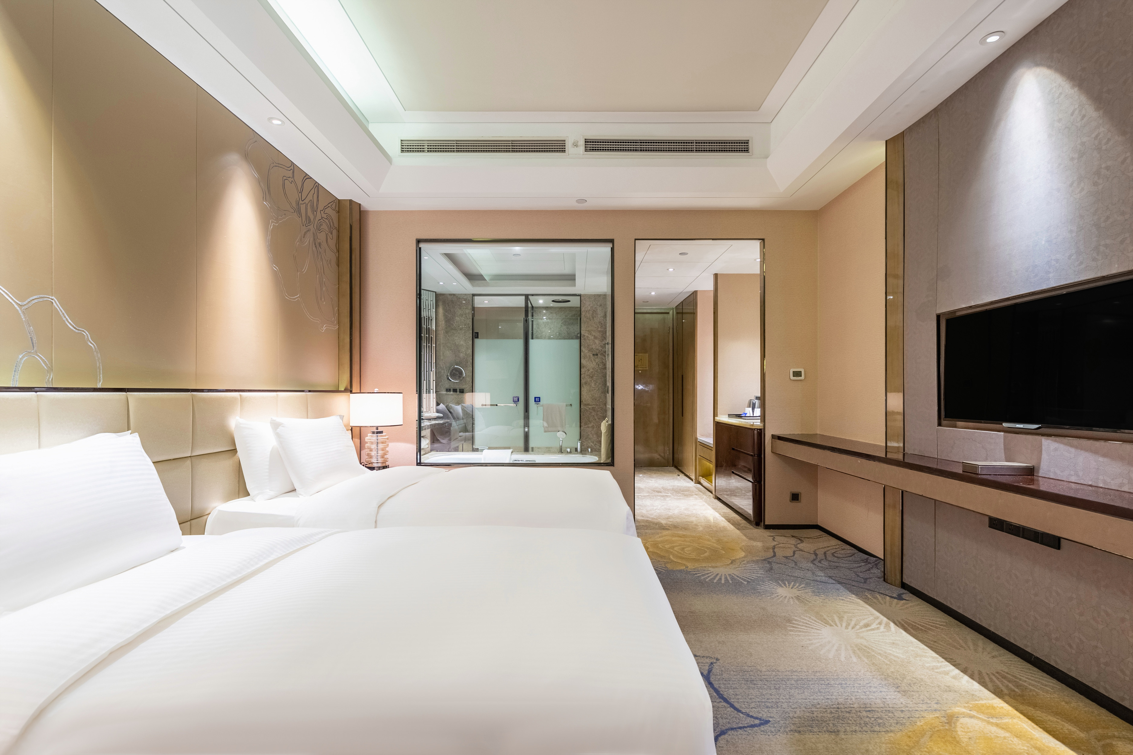 豪华双床房(金可儿乳胶床垫+悦享都市城景+深泡浴缸)
