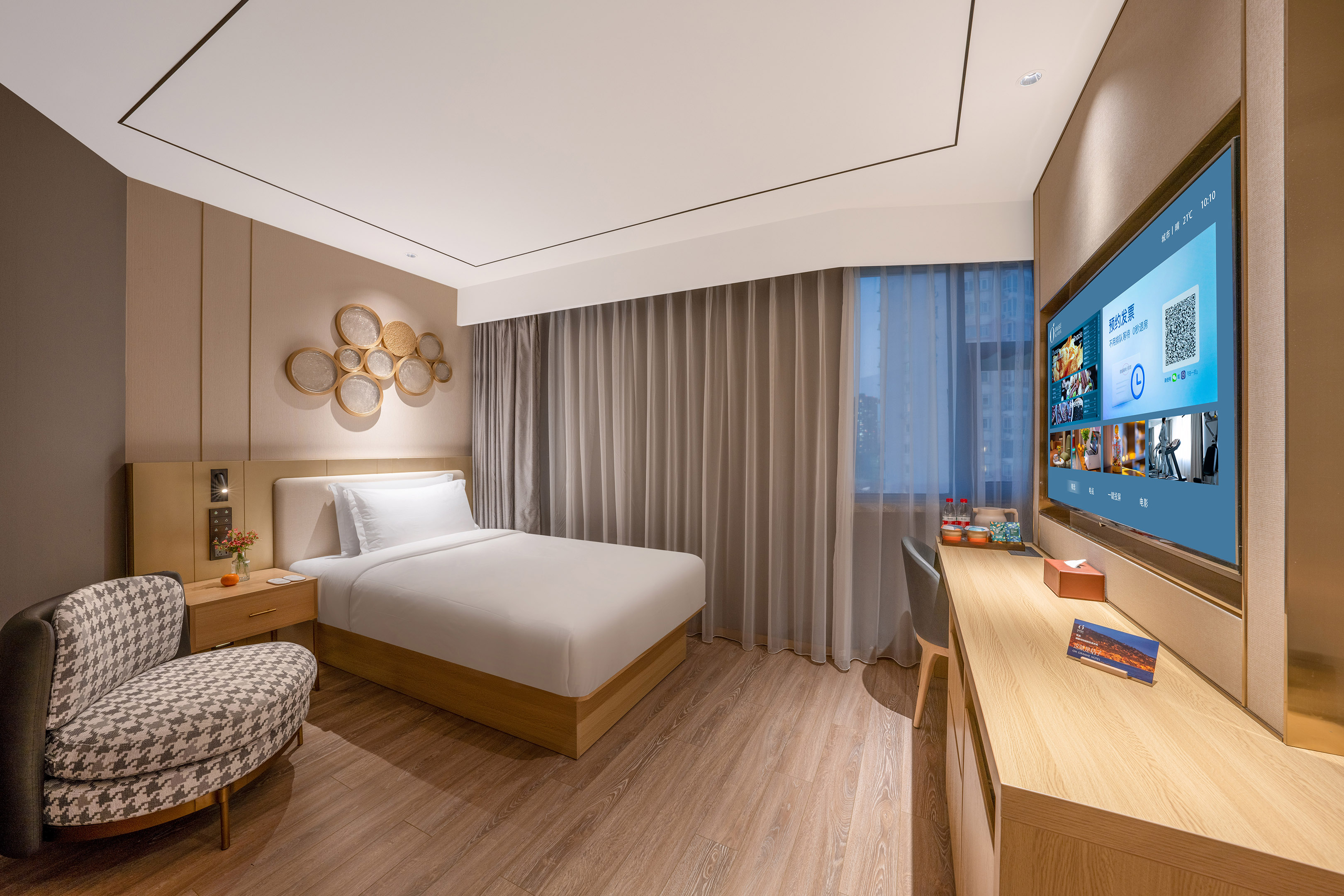 月若流金深睡大床房(智能客控+65寸电视投屏+冰箱)