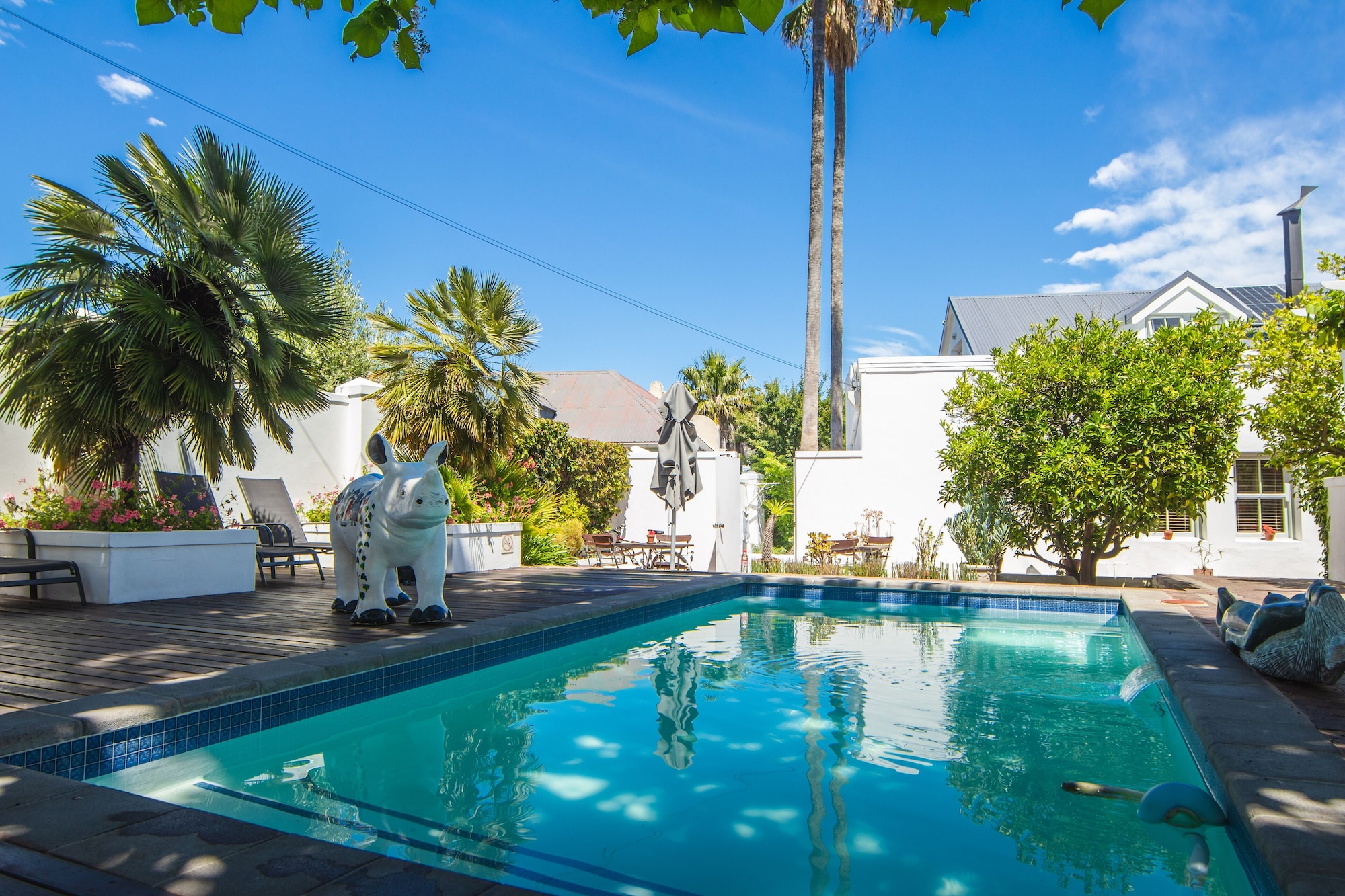 With a stay at Ashbourne Boutique Guesthouse in Franschhoek, you'll be in the historical district, just a 5-minute walk from Franschhoek Wine Tram and 6 minutes by foot from Dutch Reformed Church. This guesthouse is 0.3 mi (0.5 km) from Franschhoek Art House and 0.4 mi (0.6 km) from Franschhoek Town Hall.Be sure to enjoy recreational amenities including an outdoor pool and bicycles to rent. Additional amenities at this guesthouse include complimentary wireless internet access, a fireplace in the lobby, and tour/ticket assistance.Quench your thirst with your favorite drink at the bar/lounge. A complimentary full breakfast is served daily from 8:00 AM to 10:00 AM.Featured amenities include complimentary newspapers in the lobby, dry cleaning/laundry services, and luggage storage. A roundtrip airport shuttle is provided for a surcharge (available on request), and free self parking is available onsite.Make yourself at home in one of the 8 individually decorated guestrooms, featuring refrigerators and minibars. Complimentary wireless internet access is available to keep you connected. Private bathrooms with showers feature designer toiletries and hair dryers. Conveniences include safes and desks, and housekeeping is provided daily.