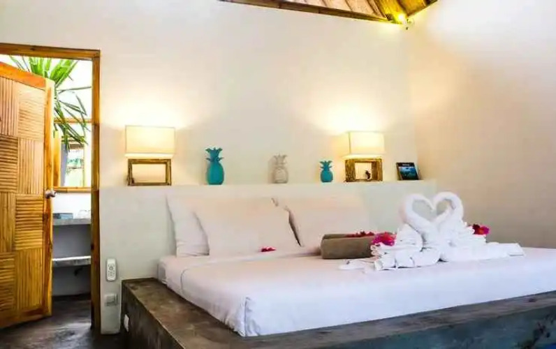 The Bambu Huts位于著名的艾尔岛区,地理位置便捷。 完善的设施可让您在住宿期间更加愉悦。 住宿内设免费房内WiFi, 24小时安保, 每日客房清洁服务, 专人办理入住退房, 厨房等设施供您使用。 客房设计极其舒适,装饰优雅,此外还配备了众多便捷设施,部分客房还配有储物柜, 衣柜, 免费茶包, 毛巾, 免费速溶咖啡等设施。 住宿环境清幽,还设有室外游泳池, 潜水, 水疗, 按摩, 儿童游泳池等休闲设施。 The Bambu Huts是在龙目岛 旅行休闲时的完美住宿选择。