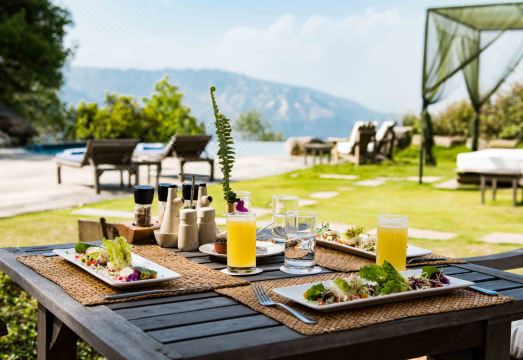 Mindful spaces throughout the retreat encourage stillness and reflection — from the 20 ton Himalayan Rock Salt House for breathwork and the Crystal Room for deep meditation to the Shivalingam Meditation Maze for inner clarity.