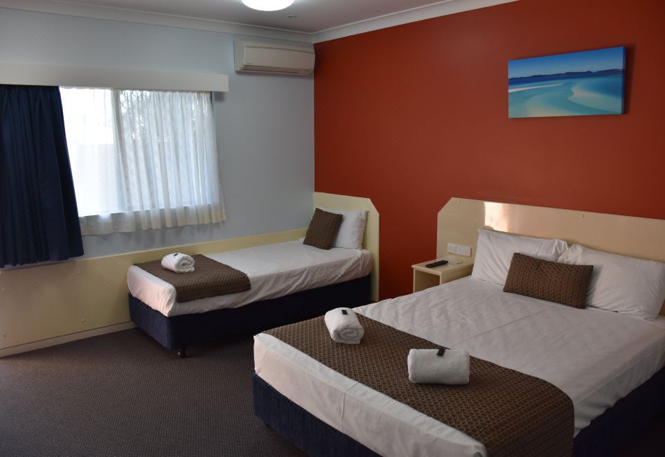 Each room at Bluewater Harbor Motel Bowen includes a wall-mounted flat-screen TV, ceiling fans, large private bathroom and a microwave. All rooms are located on the ground floor, have covered car parking directly outside and open onto a garden courtyard. Apartments with kitchen and spacious living areas are also available.