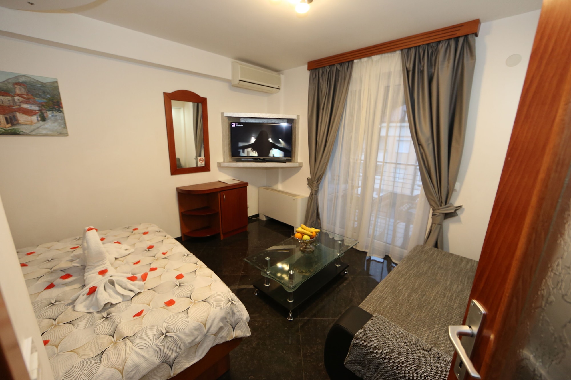 With a stay at Villa Maki in Ohrid, you'll be near the airport, just a 1-minute walk from Natural and Cultural Heritage of the Ohrid region and 6 minutes by foot from Lake Ohrid. This guesthouse is 0.9 mi (1.5 km) from Biljana's Springs and 1 mi (1.6 km) from Rimo Karting.Pamper yourself with onsite massages or make use of the other amenities, which include complimentary wireless internet access and concierge services.Buffet breakfasts are available daily from 8:30 AM to 10:30 AM for a fee.Featured amenities include a 24-hour front desk, luggage storage, and a water dispenser. Free self parking is available onsite.Make yourself at home in one of the 10 guestrooms, featuring kitchenettes. Complimentary wireless internet access keeps you connected, and 40-inch LCD televisions are provided for your entertainment. Conveniences include desks and electric kettles, and housekeeping is provided daily.