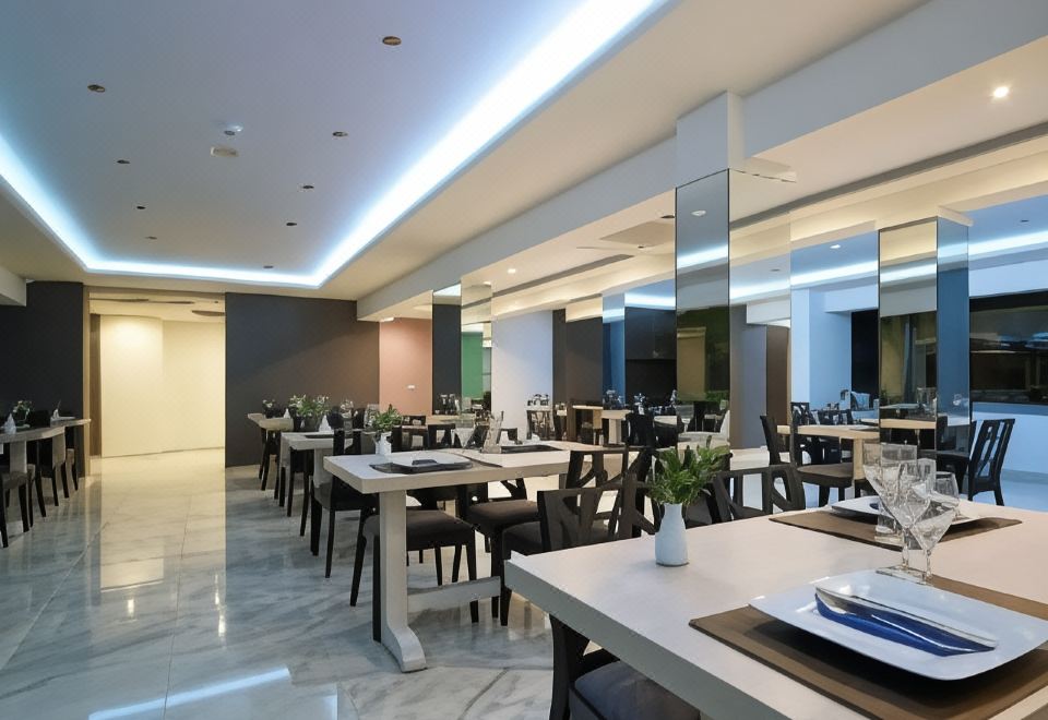 酒店内的酒吧俯瞰大海,供应饮品和咖啡。酒店内的餐厅享有优雅的氛围,供应午餐和晚餐。