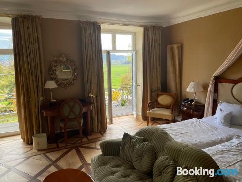 Guest rooms at the hotel are equipped with a seating area, a flat-screen TV and a safety deposit box. Schloss Neutrauchburg has certain rooms that include a balcony, and each room comes with a private bathroom with a shower and a hairdryer. The rooms have a desk.