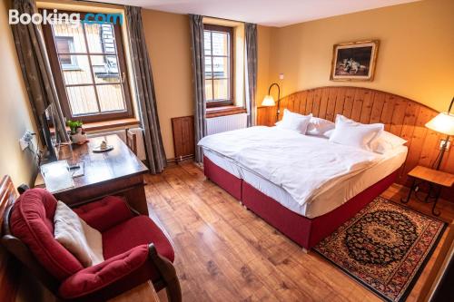 Located in Kvilda’s center and just 656 feet from the slopes, Šumava Inn offers a restaurant and a spa area with a sauna and hot tub. All rooms have free Wi-Fi and an private bathroom.