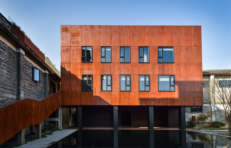 临海余丰里位于临海台州府城文化旅游区内,紫阳古街旁,背靠巾山公园,是一家由百年历史建筑“余同丰”当铺,六十年历史老仓库建筑群改建的高端城市民宿。团队邀请古建匠人,让历史建筑的每根梁柱完美还原、修旧如旧,并与国内知名建筑师团队合作,用现代设计来平衡古色古香。前院的书店和咖啡馆,用未来感十足的金属连廊横跨百年石墙,带人穿梭书海、穿越古今;后院备有多间高端客房,伴爱书人与百年院落、千年古城、万本好书同眠。