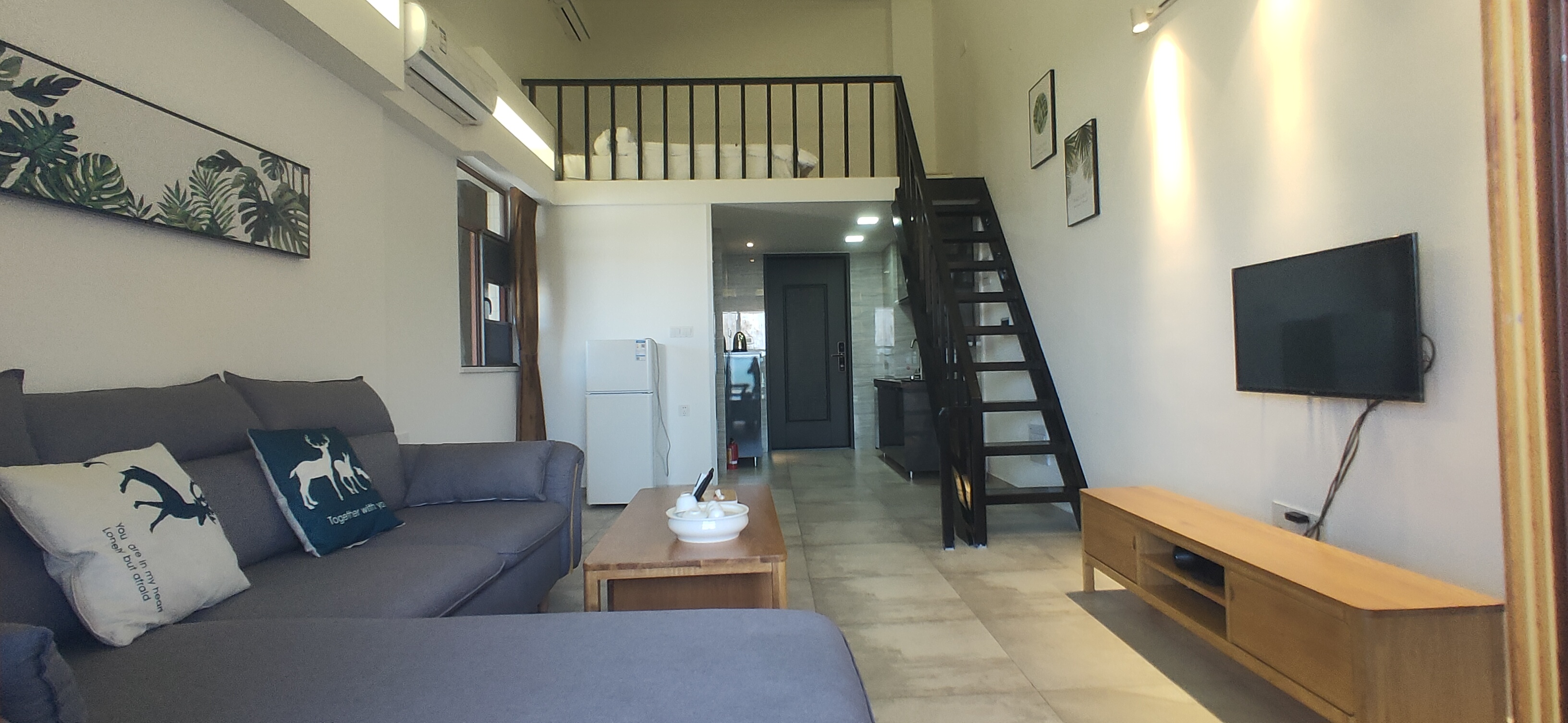温馨loft山景一居高端套房1《冰箱洗衣机+客厅+观山观城景阳台》