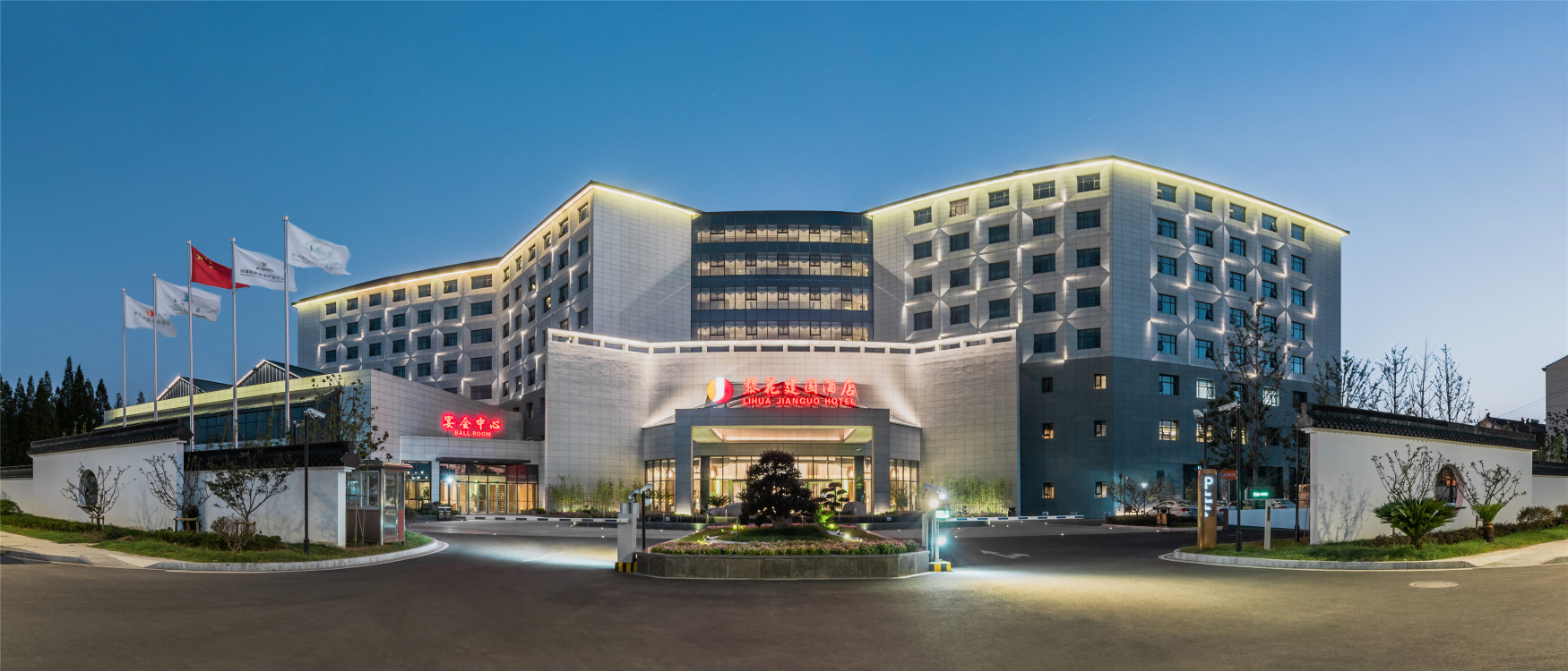 酒店建筑面积3.5万平方米,位于“全国历史文化名镇”黎里古镇,距离西塘古镇、同里古镇20-30分钟车程,酒店依托黎里古镇深厚的江南水乡、人文底藴,打造“人文-自然-体验”三位一体的休闲场所。江南烟雨,小桥流水,黎里古镇是一座保存较好的典型江南古镇,历史可追溯2500年前,漫长巷街和明清临水建筑,手摇乌篷船,享受原生态古镇的慢生活。酒店致力于打响“慢游吴江、快乐无疆。游黎里古镇,住黎花建国”的旅游形象品牌,以“苏式生活、吴江服务”为宾客提供苏式特色体验。酒店拥有近1000平方无柱式国际宴会厅,格调雅致的中、西餐厅,健身房及室内泳池等娱乐设施。酒店外观设计与江南特色一脉相承,白墙青砖,飞檐黑瓦,室内采用传统中式风与现代潮流的对话碰撞而产生的新中式风格,提炼了经典元素并加以简化和丰富,空间配色上给人以轻松自然。酒店朝向古镇主要景观麪,兼具优良采光与古城风貌,地理优势明显,与黎里古镇中心景点仅一步之遥,距上海虹桥国际机场、虹桥火车站仅1小时车程,距沪渝高速、常台高速仅10分钟车程,交通十分便捷。为商务、会议、休闲、度假游客入住提供了一个舒适及具有艺术气息的理想场所。