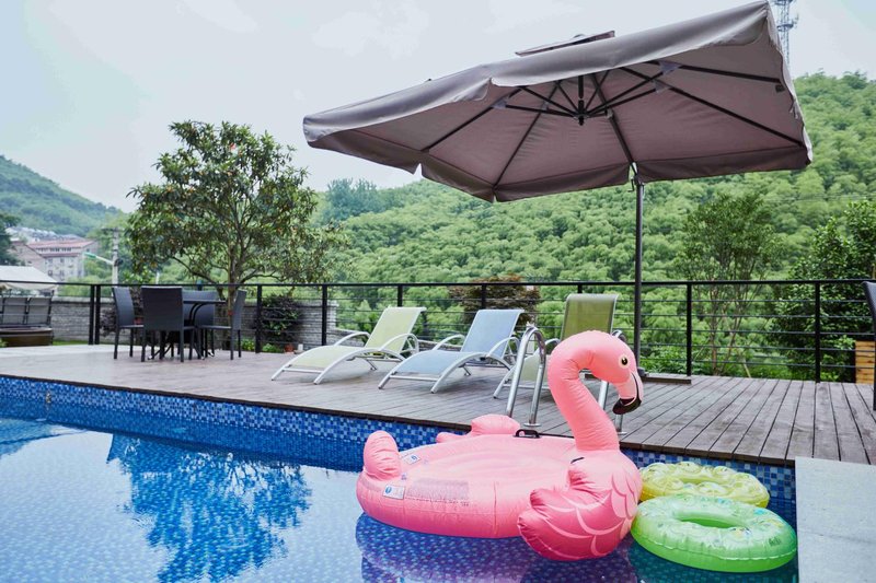 莫干山卓晗山居客栈在村子里,房子背面是整片的竹林,房子前面就可以看到对面的山和远方辽阔的天空,背山面竹,独处山的一脚,在这里向左可以进到村子感受乡村生活,向右就可以呼吸新鲜空气,感受自然之淳朴。卓晗山居一共9间客房,每个房间都可以透过大面积的落地窗,看到外面山竹摇曳的风景,从都市回归山野。民宿主人是一个王者荣耀迷,每间客房名称都以王者荣耀人物命名。拥有自己私家的露天泳池,房间设施完善,都有wifi覆盖。