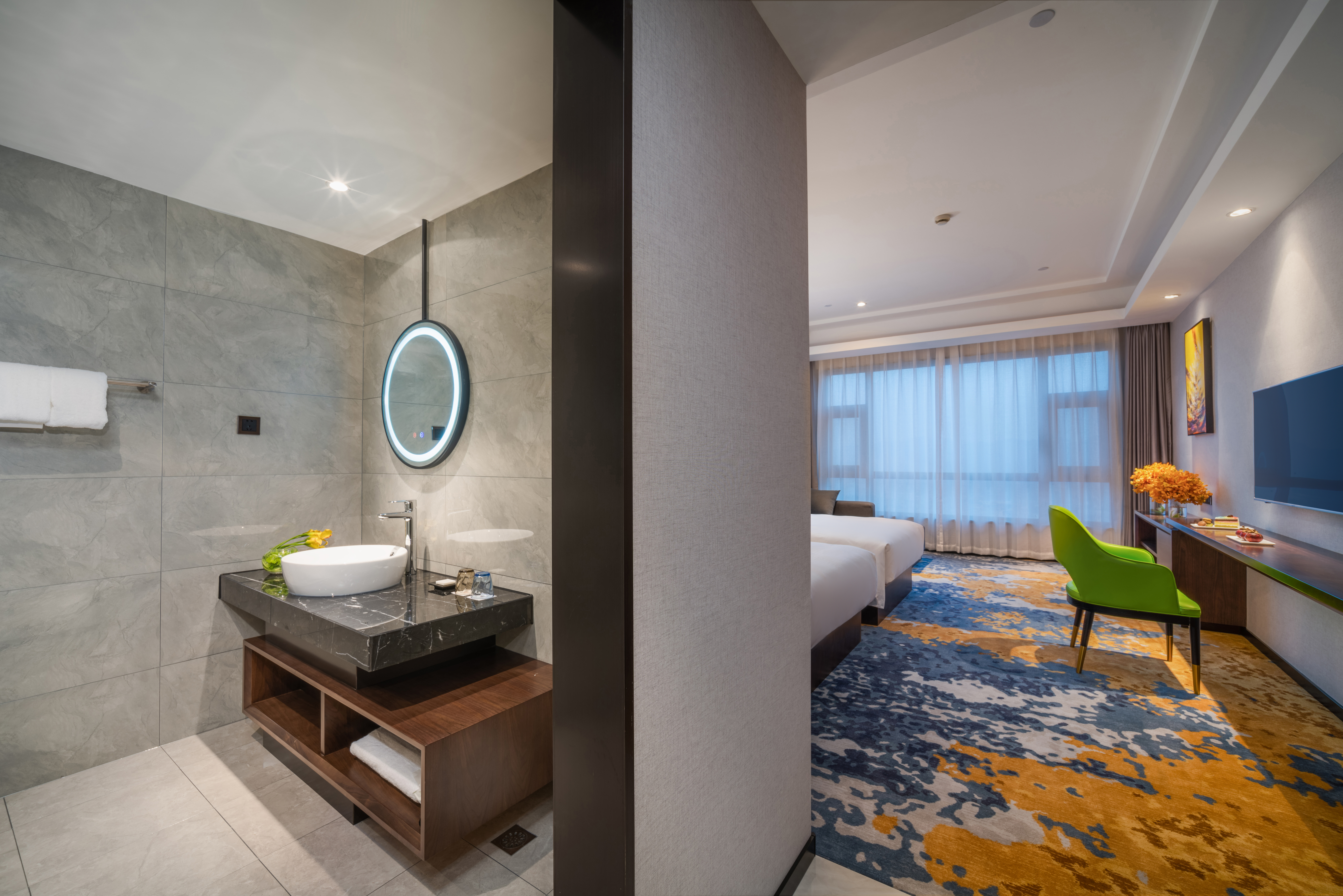 豪华双床房【唐风设计+高层落地窗+大唐芙蓉香洗护】