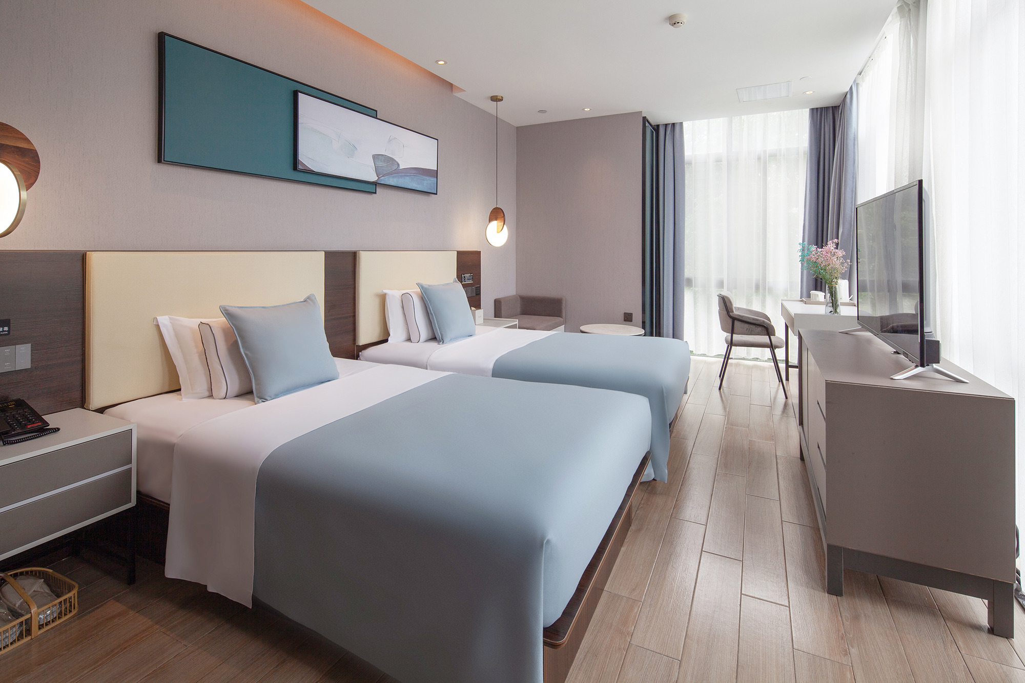 沐妍酒店(柯橋萬達輕紡城體育中心店)預訂電話:+8620-86009099