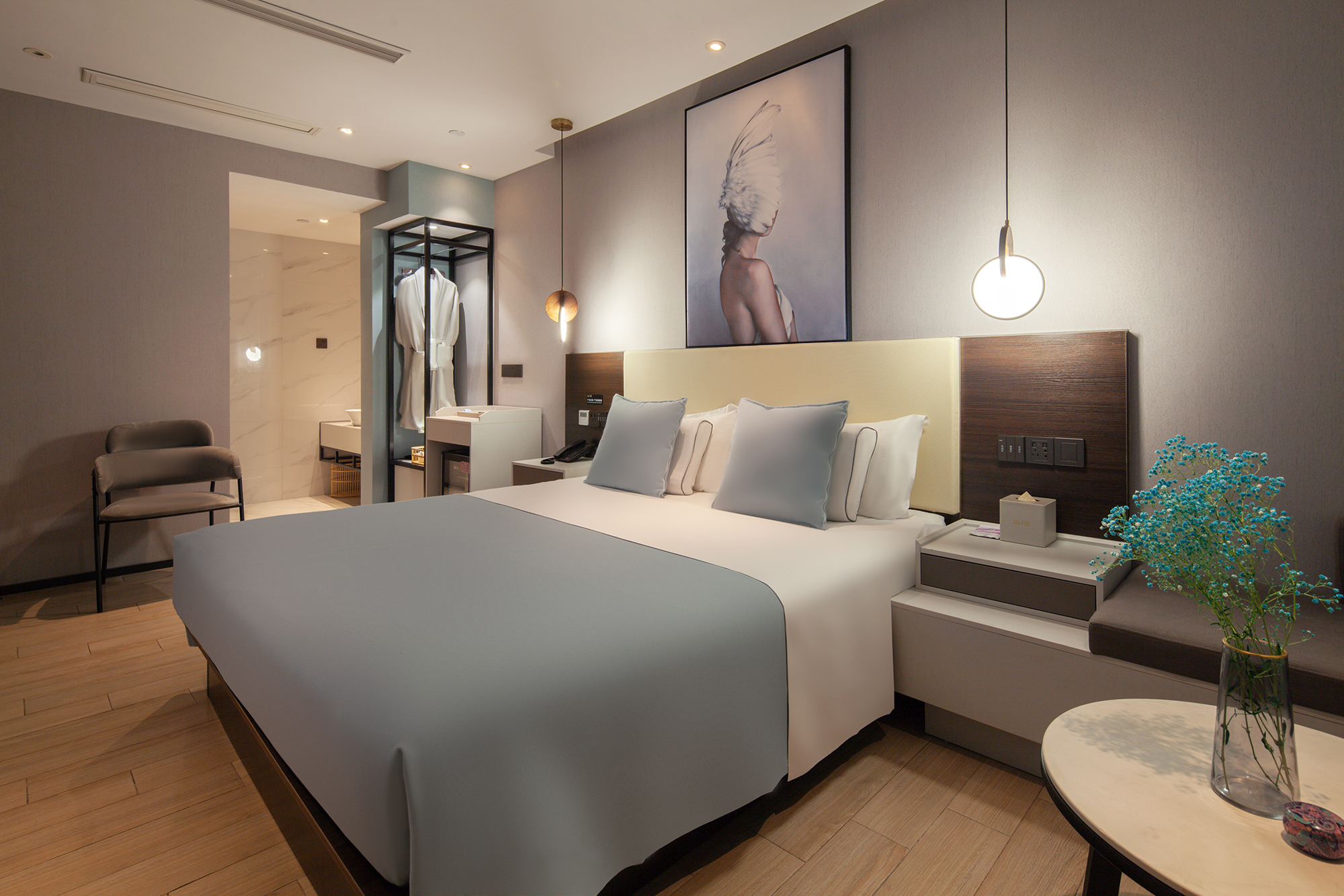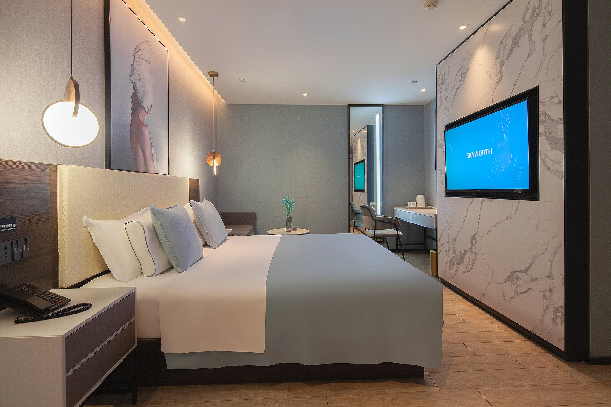 沐妍酒店(柯橋萬達輕紡城體育中心店)預訂電話:+8620-86009099