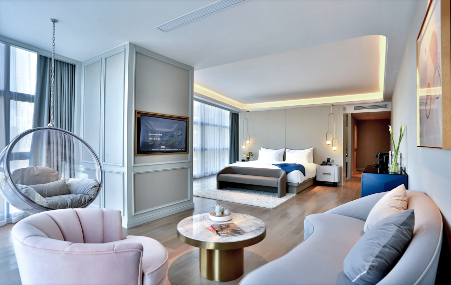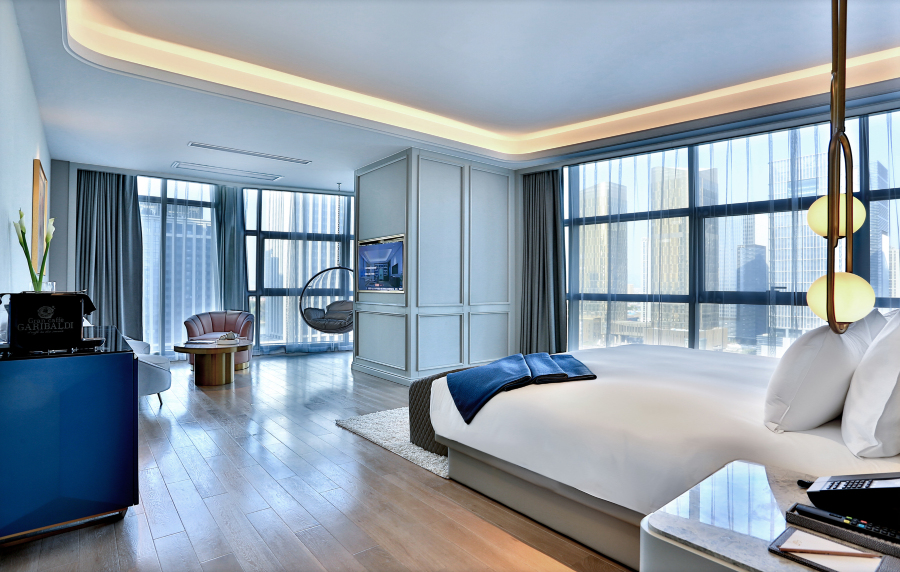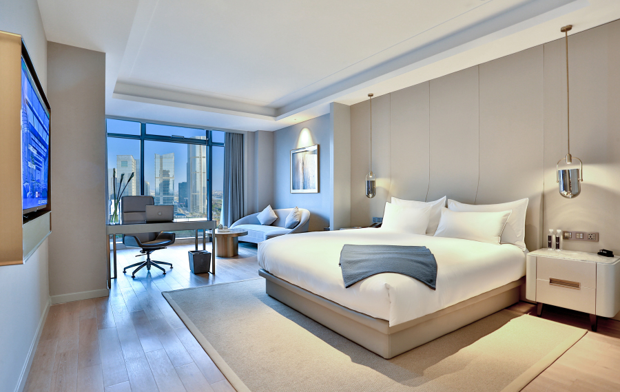 义乌环球酒店坐落于义乌核心金融商务区,毗邻国际商贸城一期市场,与国际博览中心隔江之遥,与义乌城市生活广场新光汇一街之隔,距离国际商贸城客运中心约2公里。义乌环球酒店致力于将酒店融合在家、办公室、社交圈概念,是一家集生活、娱乐、商务、社交、直播于一体的360°体验空间。义乌环球酒店共有两百余间客房,配套设施完善,健身房,游泳池,台球室,棋牌室,美容美发,SPA等,一应俱全,所有房间配备全景落地玻璃窗,让您纵情饱览璀璨美景,感受繁华都市。义乌环球酒店智能科技与优雅客房的碰撞,给您与众不同的入住体验。贴身管家服务,处处流露真挚情怀,让您沉醉于无与伦比的奢华享受中。