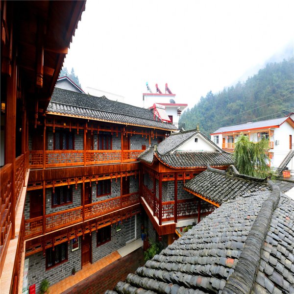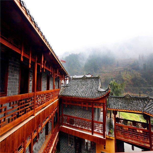 戴家院子客栈是在清代“湘西首善”戴万卷百年老宅基础上翻修而成,店掌柜秉承对本民族文化的敬畏与尊重,尽可能传承土家族传统建筑文化,不论从建筑线条轮廓的把握,周围环境的契合,光影效果的渲染,还是从建筑材料的使用,文化元素的点缀,以及实用功能的控制,都力求还原于历史的真实,从而使客栈在满足一般居住功能的基础上,赋予它厚重的人文气息。客栈三层结构,为土家杆栏式建筑,农家小院布局,青砖黛瓦木制廊道吊脚,外观属于典型的土家建筑格调。在使用功能上较多地体现出客栈掌柜的人文情怀,有书吧茶吧供你消遣,有家庭厨房为你服务,你可以选择DIY,满足自己个性化的味蕾。客栈还提供各种特色房型供您选择——山景阁楼房、温馨双床房、浪漫大床房、亲子三人间、棋牌房,还有最具特色的土家圆门滴水婚嫁床等。