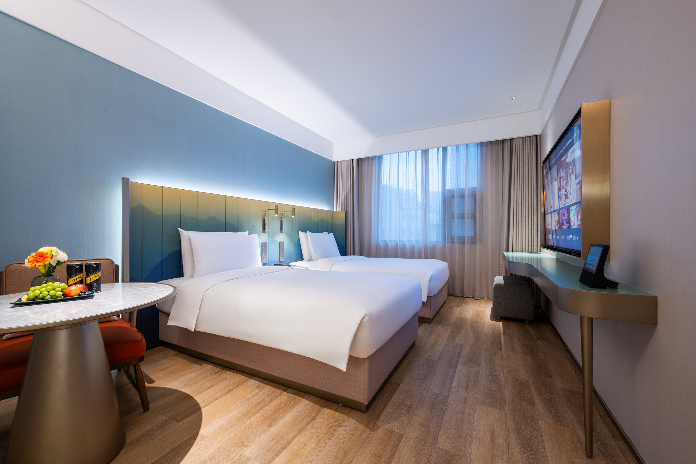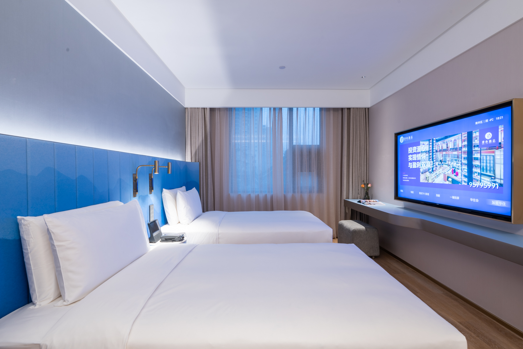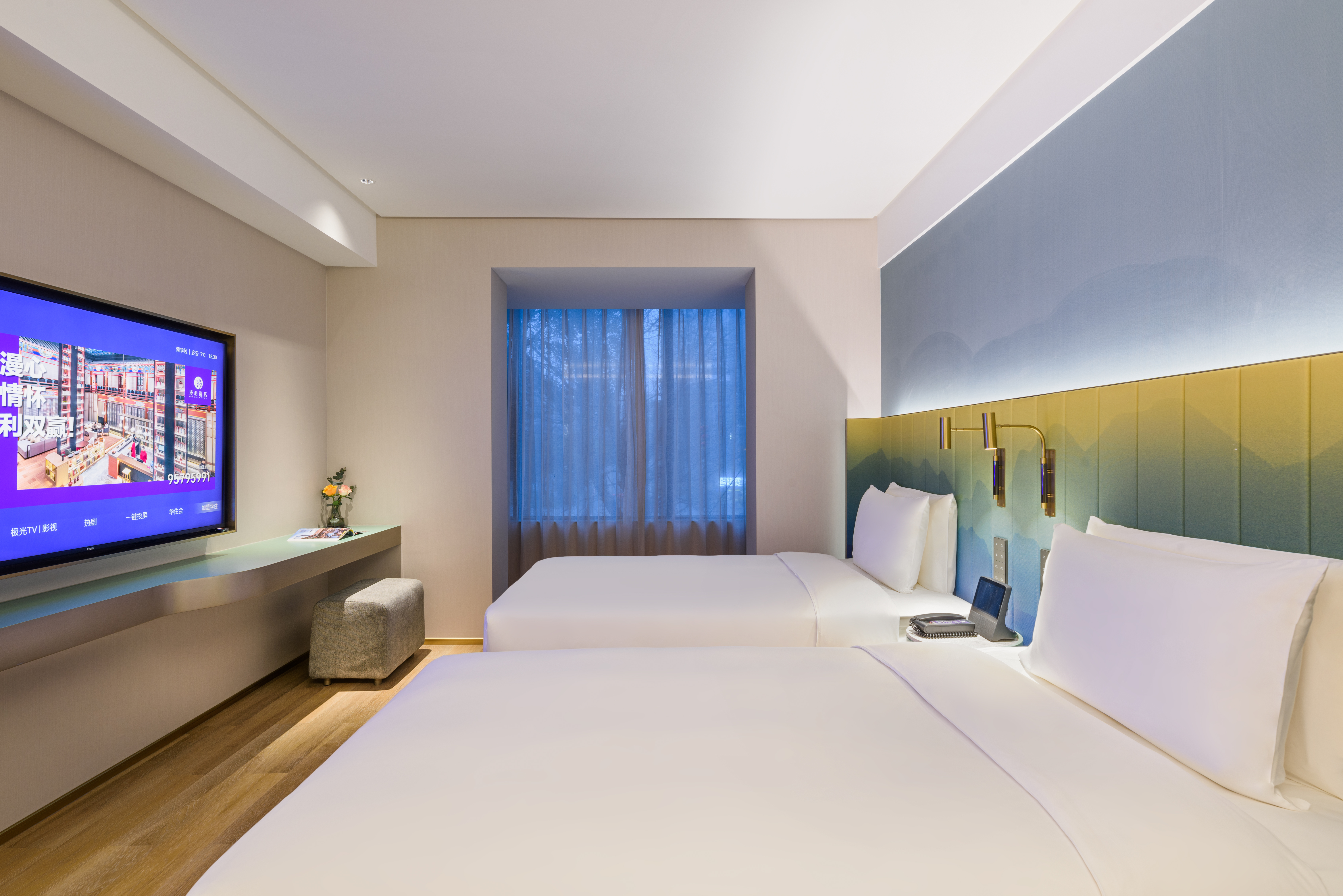 心悦高级双床房(雨淋顶喷+智能小度+金可儿床垫)