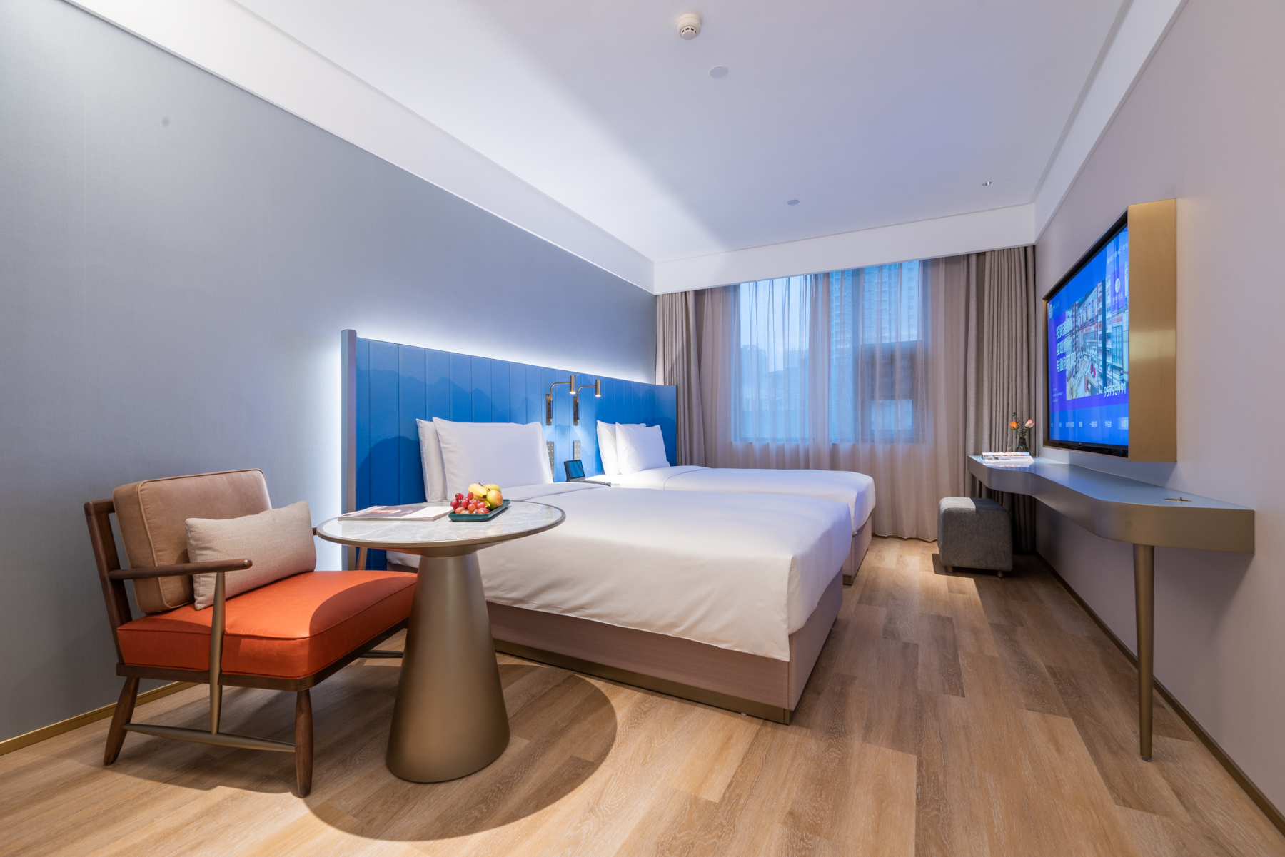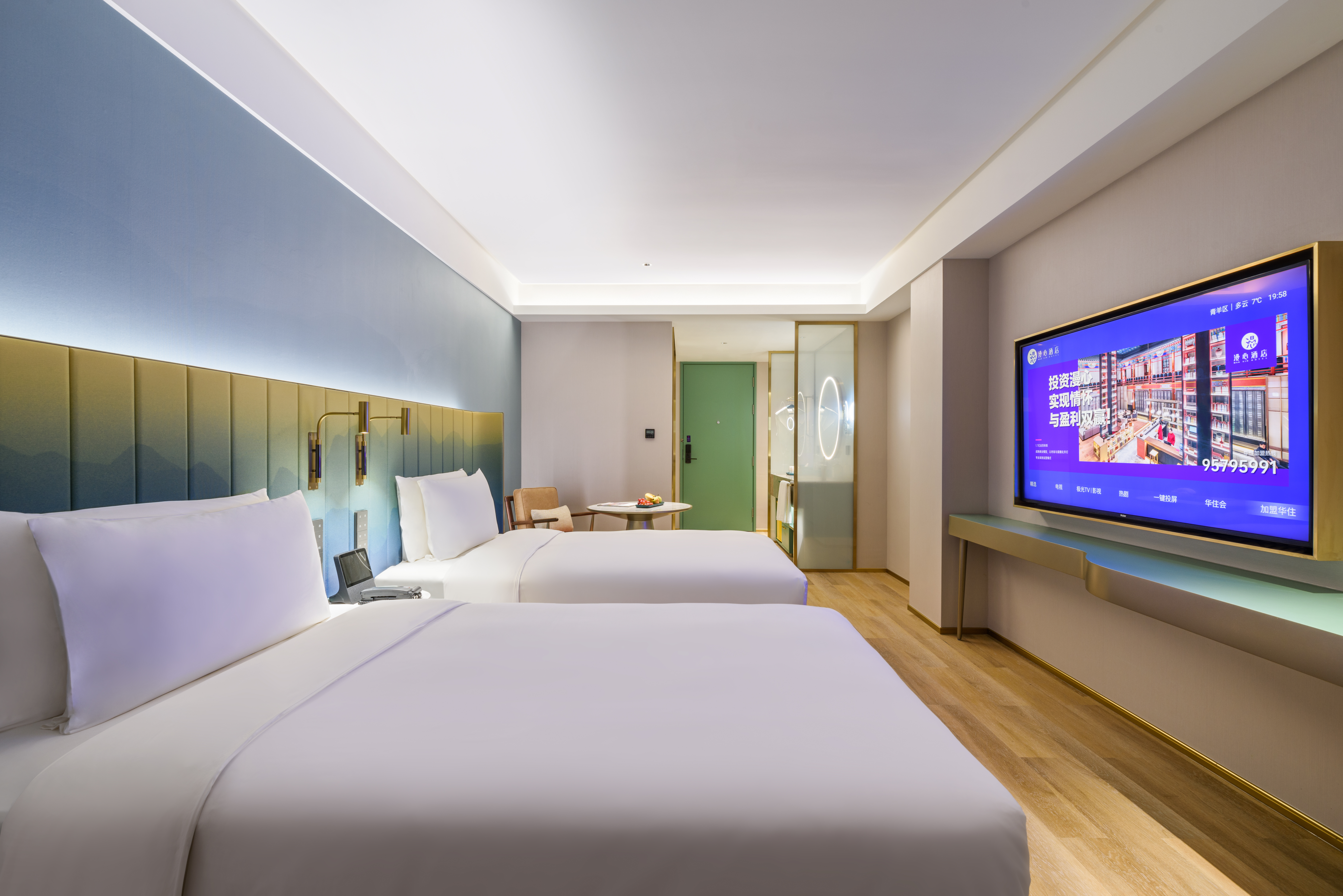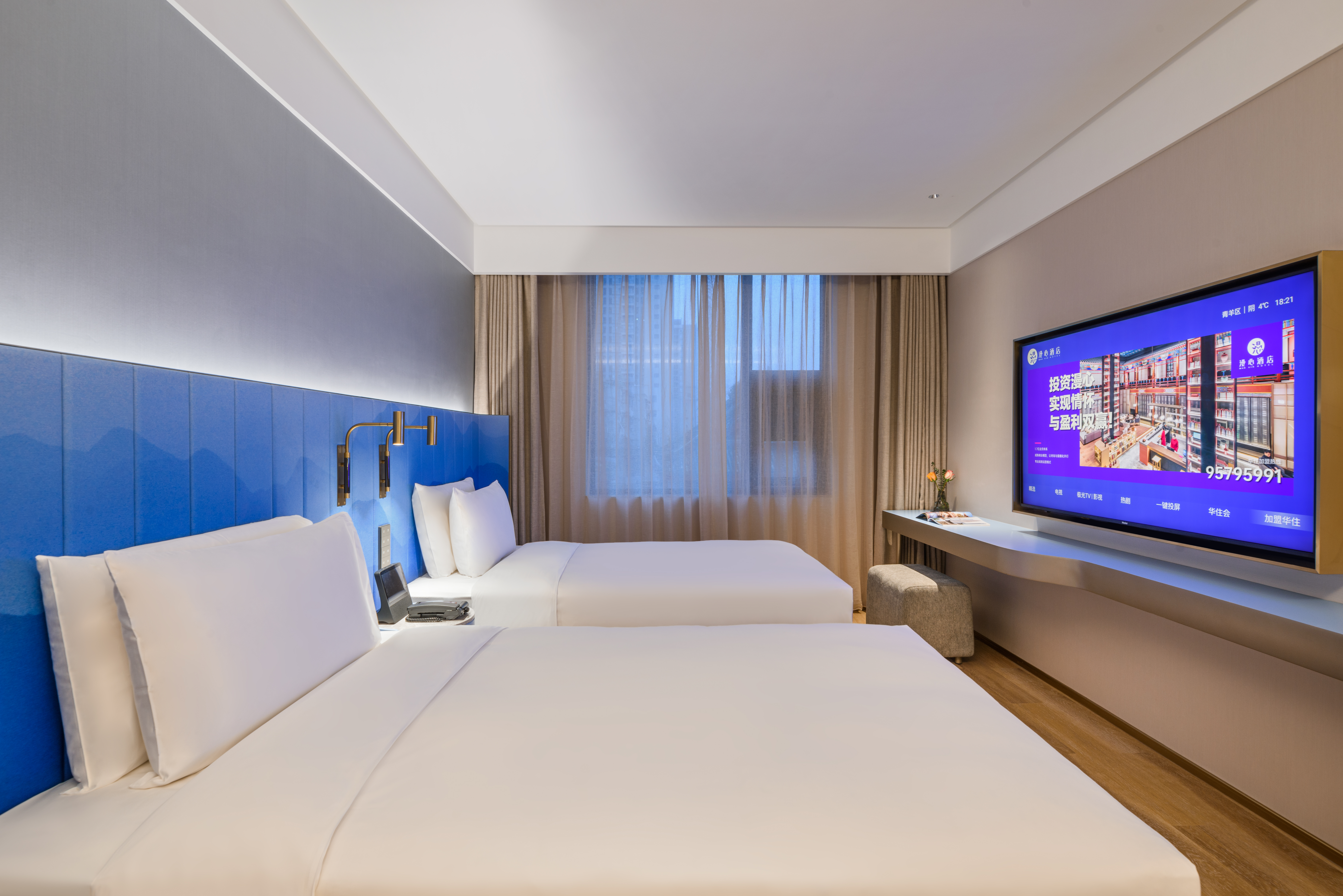 心悦高级双床房(雨淋顶喷+智能小度+金可儿床垫)