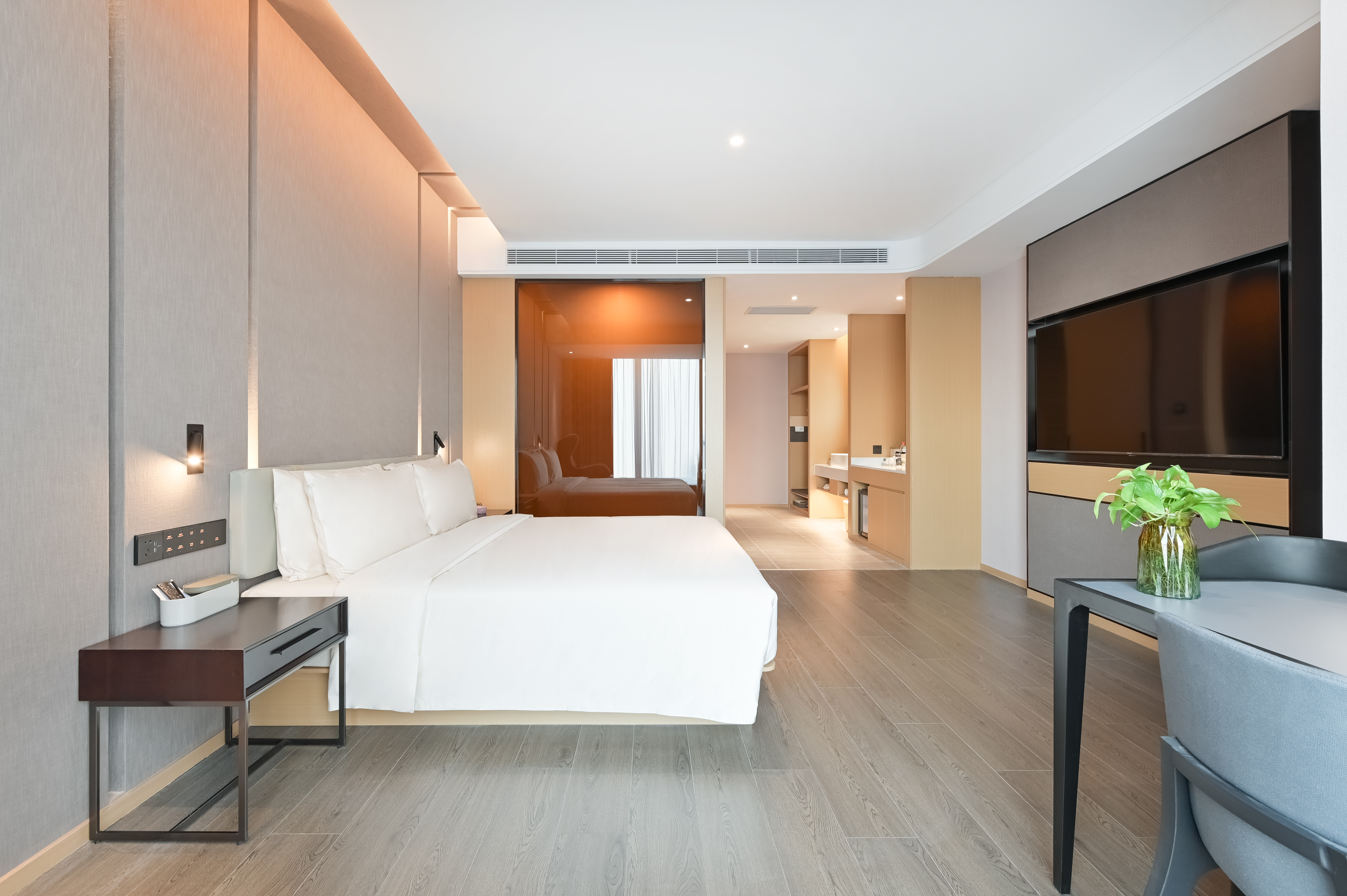几木大床房(深睡枕PRO+智能客控+小冰箱+65寸可投屏电视+浴袍)