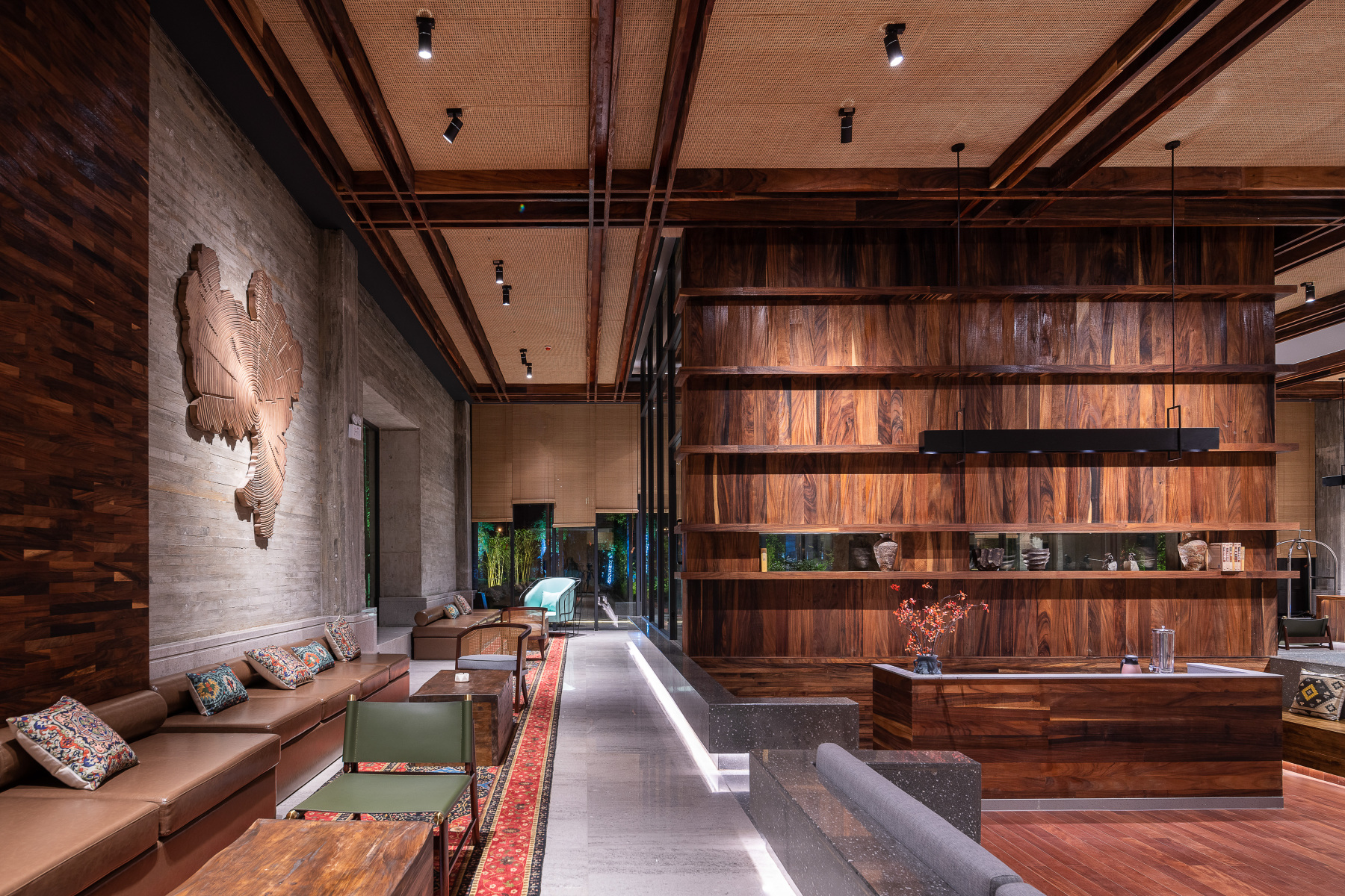 老君洞·道天下假日酒店是苏盟集团重资打造的一家精品主题酒店,由主题精品酒店及民宿共110间客房、景区会议中心、景区网红餐饮等四部分组成。设计师酒店,坐标距离高速公路入口最近的国家AAAA级老君洞景区,毗邻城南游客集散中心、县博物馆、大苗山古城等。酒店泊车空间充足,交通便利,距三柳高速融水县出入口仅需七八分钟,至融水县火车站约十多分钟,至县中心繁华商业圈约五分钟。一线山景房“非常道精品酒店”,老子道德经:道可道,非常道。既能体验到一种能以言语文字表达的“常道”,也能让我们感受一种特别的“非常道”。一溪云民宿,苏轼《竹香子》:几时归去,作个闲人。对一张琴,一壶酒,一溪云。忘掉人生的种种烦恼,最好的解脱方法莫过于远离名利场,归隐田园。一种清高而富有诗意的、远离喧嚣的田园生活却令人十分向往,弹琴,饮酒,游赏山水,吟风弄月,闲情逸致。一棵树民宿,尘世浮华,扎根于大地,向着自己渴望的天空,张开怀抱,随风舞动枝叶,看冬去春来,看云卷云舒。最潮设计的露天无边泳池在酒店顶层,大堂右边有个小花园,内院有一角度一风景最具设计感的飞龙梯和抖音休闲平台,一棵老桂花树在金秋时节香飘进了每一间客房。枕山而眠,被鸟叫醒,给您一张离老君洞AAAA景区最近的床。