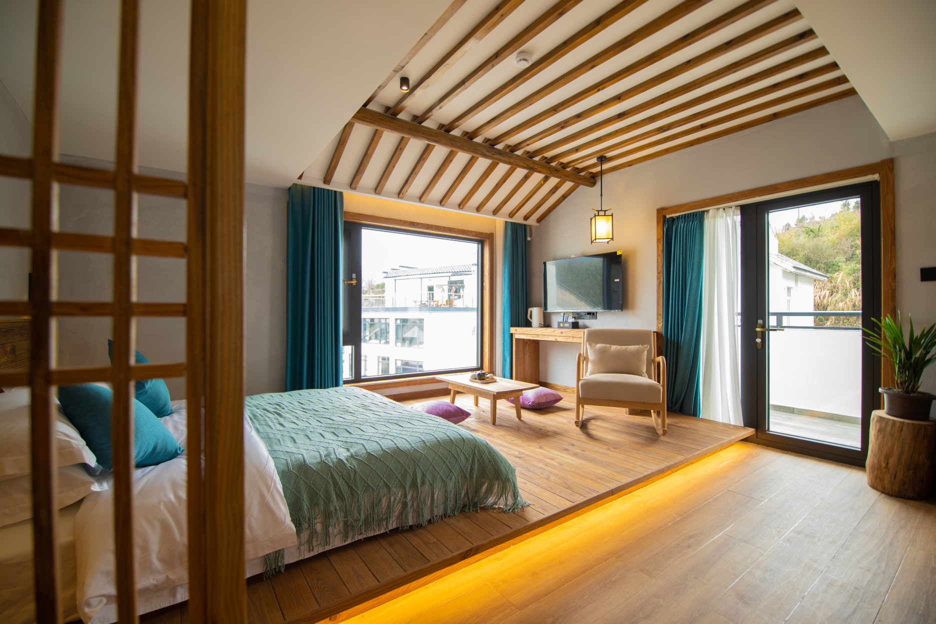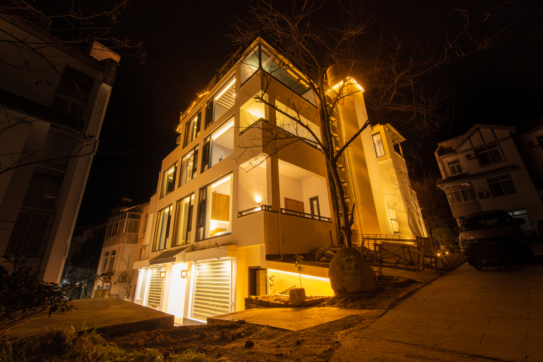 终日昏昏醉梦间,忽闻春尽强登山。因过竹院逢僧话,偷得浮生半日闲。云山渡座落在黄山风景区南大门翡翠谷景区门口,别墅群背靠黄山,环境优美。民宿使用原木装修打造,房间内均设有观景阳台,每层都铺设水暖。房型选择多元化,有loft式、家庭套房式、穹顶式,每一间房因地理优势和景致不同都各具特色,部分房间开设天窗,邀请阳光、星河及云海入的屋来。慢下来生活可以感受到人间烟火气,配有客房、餐厅、茶吧、书吧、音乐吧及投影会议室等设施,民宿享有温泉小鱼浴池和鱼疗等休闲娱乐服务,快节奏的生活忙碌之际,来一场这样的简单生活何乐不为。本店免费提供黄山汤口镇内接送服务,欢迎大家来感受一下微风,观赏一下风景,体会一次慢节奏的生活,期待我们下一次的相遇!