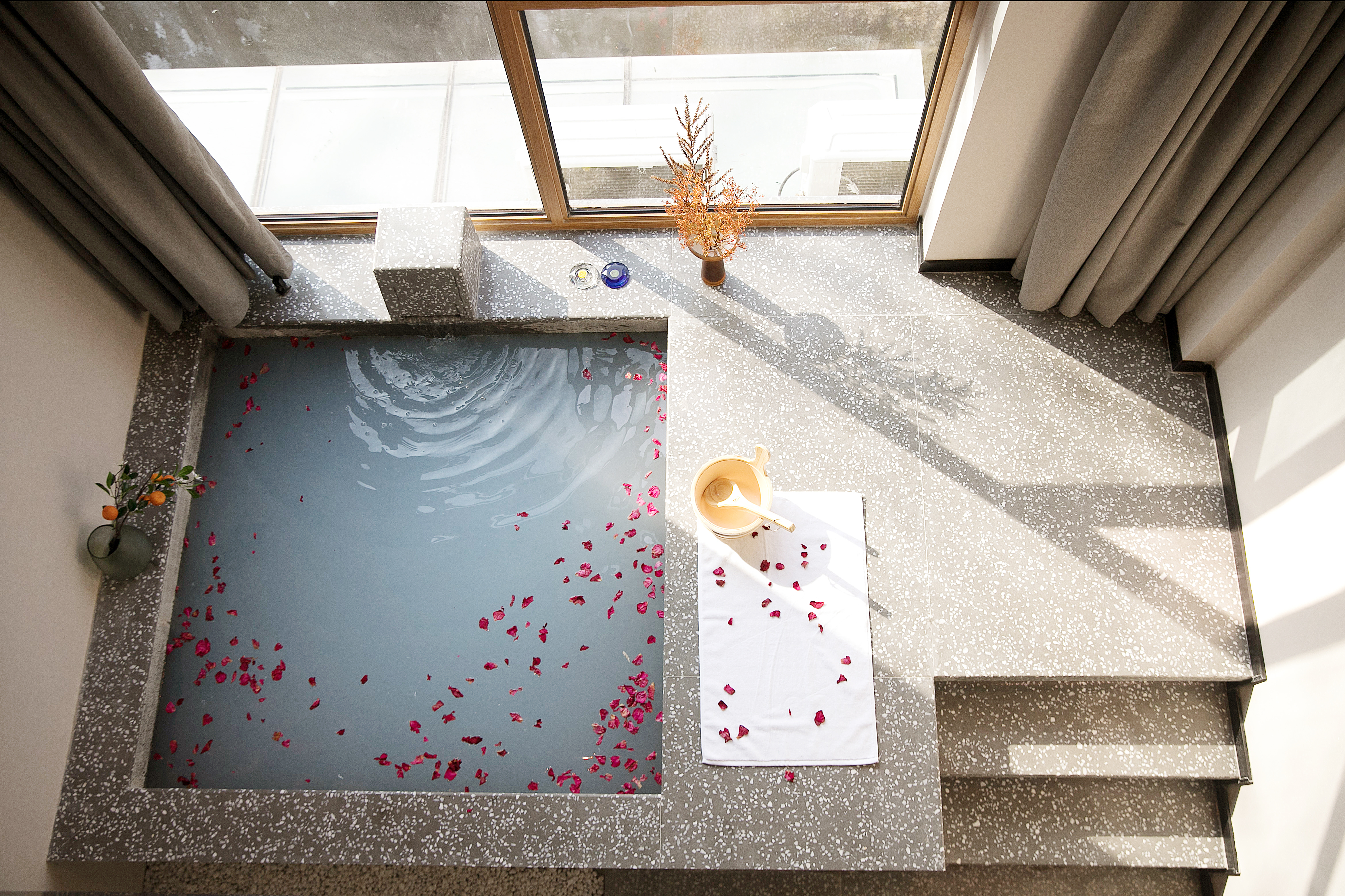 聆风听雨·温泉大床房(观景露台+私人汤池+智能马桶)