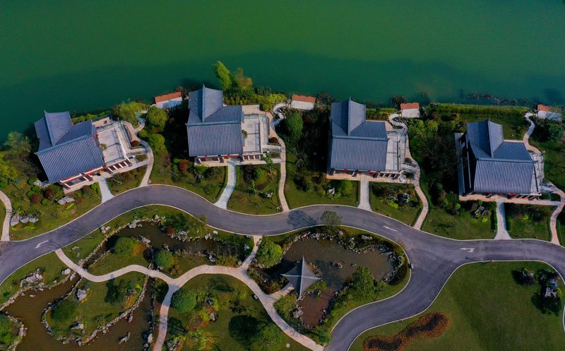 君悦山庄——以四君子之一的“竹君子”为文化主题,是蜀南竹海国宾级最高标准接待民宿。民宿坐落于蜀南竹海“竹奢组团”,本着“君子逐水而居,君子比德于竹”的设计理念,以典型的川南民居新中式风格打造高端精品民宿。建筑面积3131.61m²,客房数量37间,主要由君悦楼和四栋临湖别墅组成,园区采用“一岛六区八园”的景观设计,集山、木、竹、水为一体。酒店浮于云山之上,隐于竹海之中,距七彩飞瀑直线距离200米、万里商业街150米、亲子乐园熊猫餐厅400米,周边配套设施齐全。