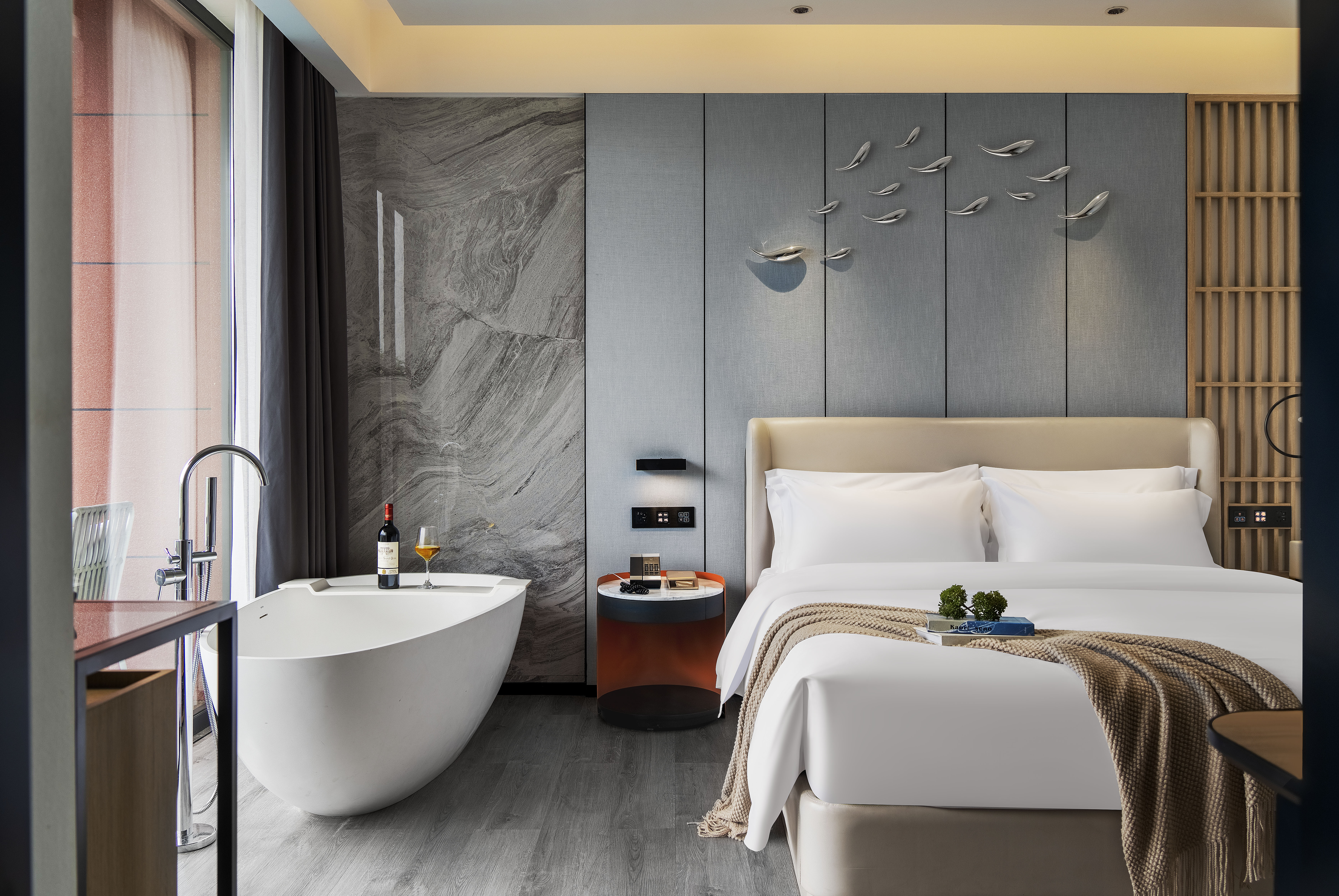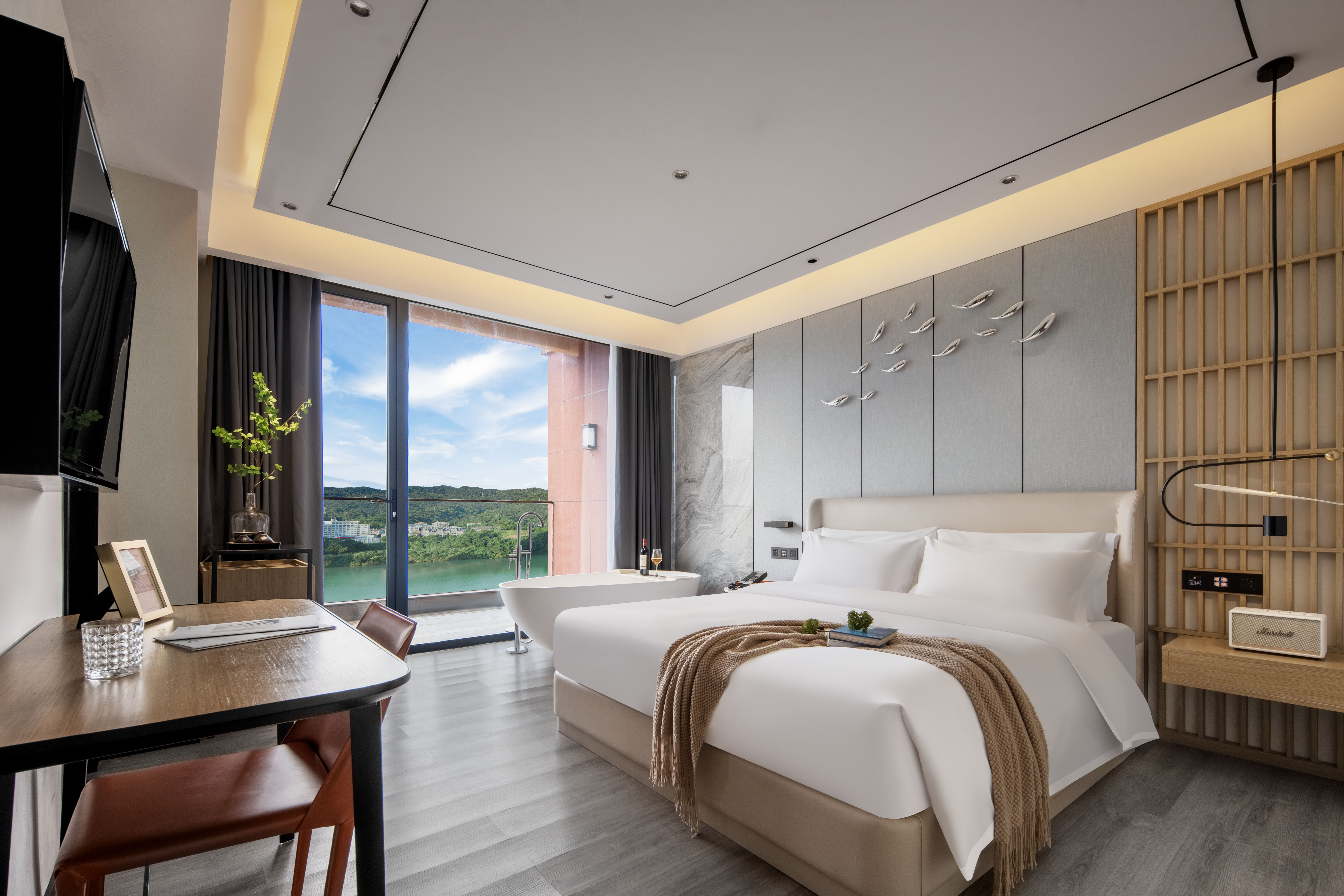 观澜·大床房(270°山水观景露台+悬浮浴缸+观景露台+马歇尔音响)