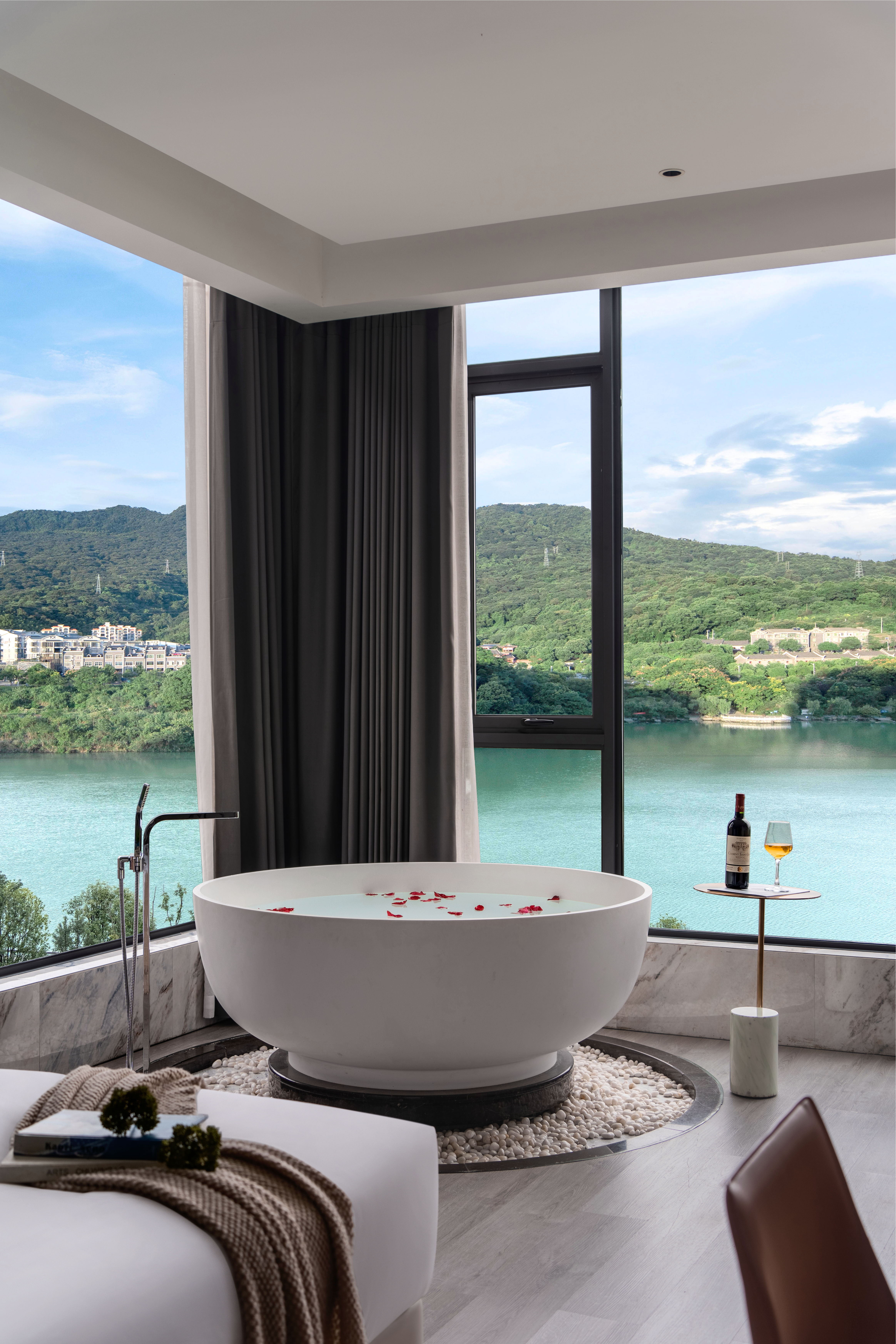 江望·全景泡池大床房(山湖景观泡池浴缸+金可儿天梦床垫+超大舒适空间+马歇尔音响)