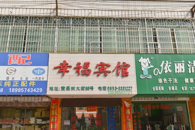 安顺幸福商务宾馆位于安顺客车南站旁(黄果树大街东),距离国家AAAAA风景区黄果树大瀑布约40公里,距龙宫5A风景区约25公里,与织金洞、夜郎洞、大明遗址屯堡相邻,周边有超市,银行,医院等,出行便利。宾馆客房清爽明亮,清洁卫生,安全舒适,所有房间配备(长途市内)电话以及20M 高速光纤,全WiFi覆盖,是您商务办公的选择。宾馆遵从经济实惠的宗旨配套设施简洁实用,还可小车停放。宾馆价格经济实惠,安全卫生,真真正正物美价廉。